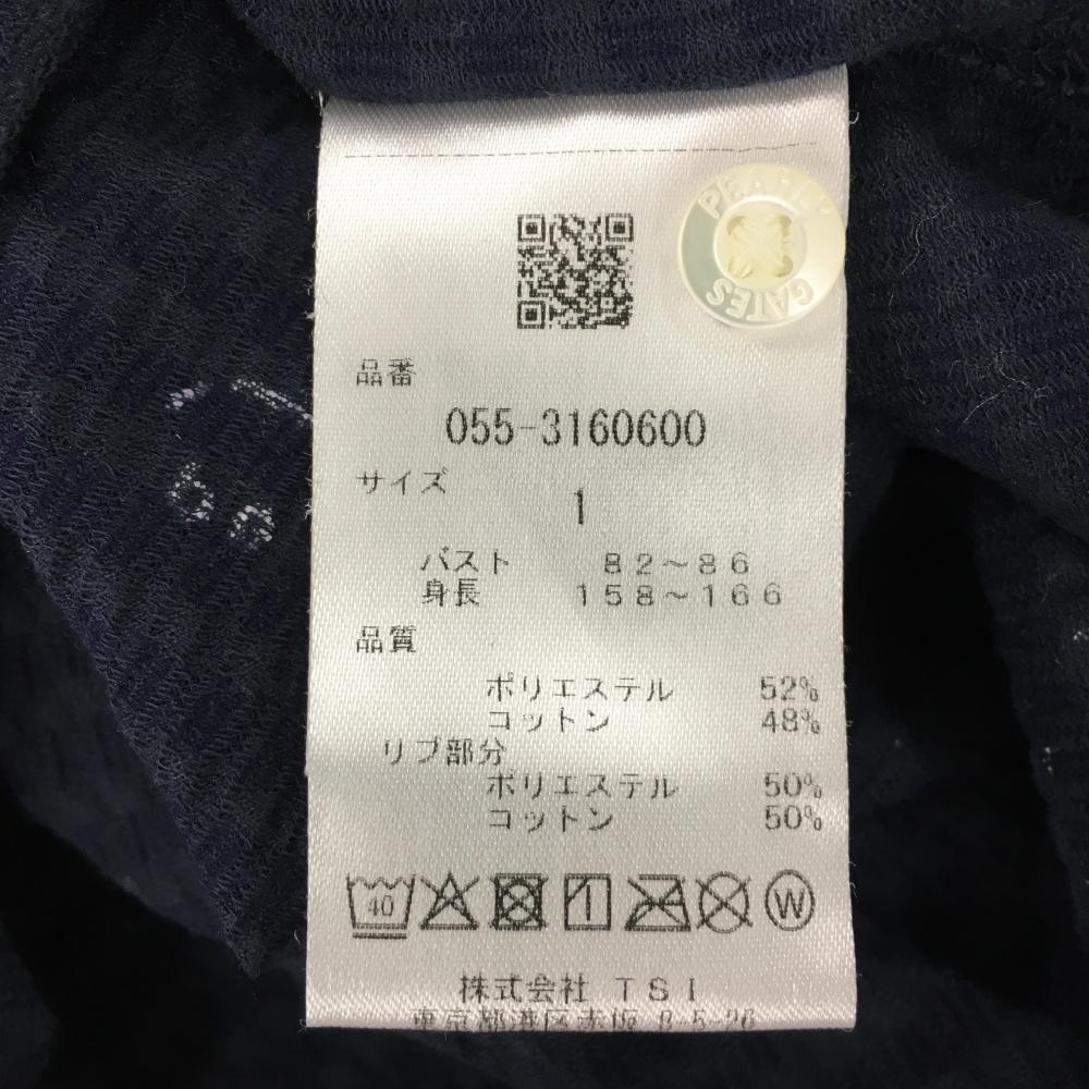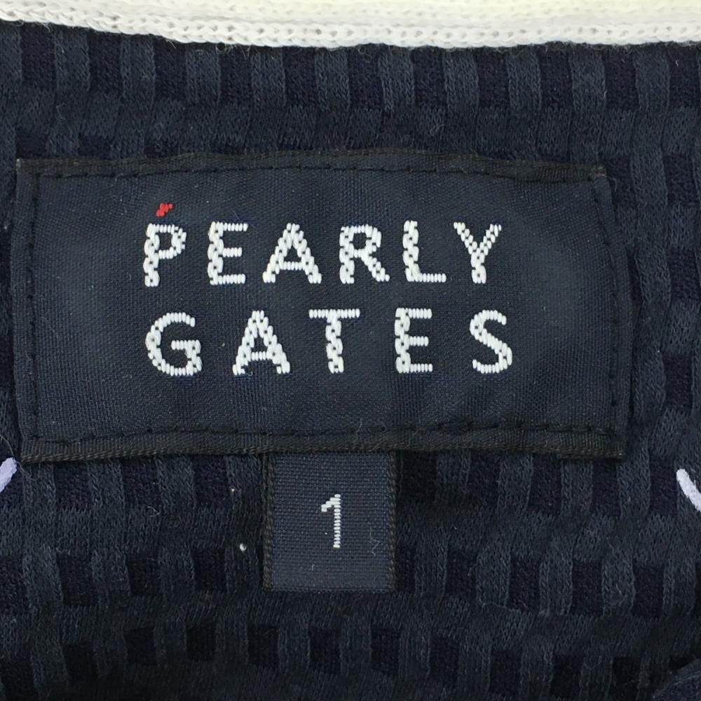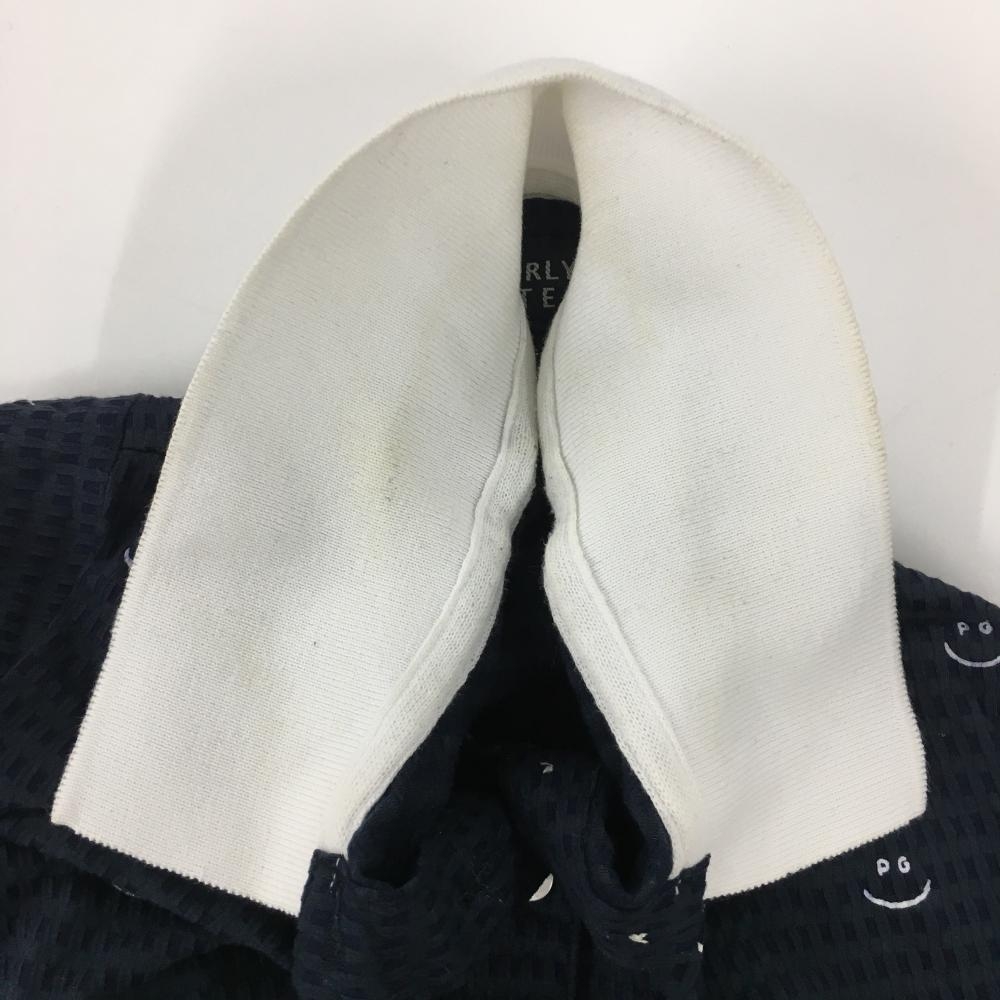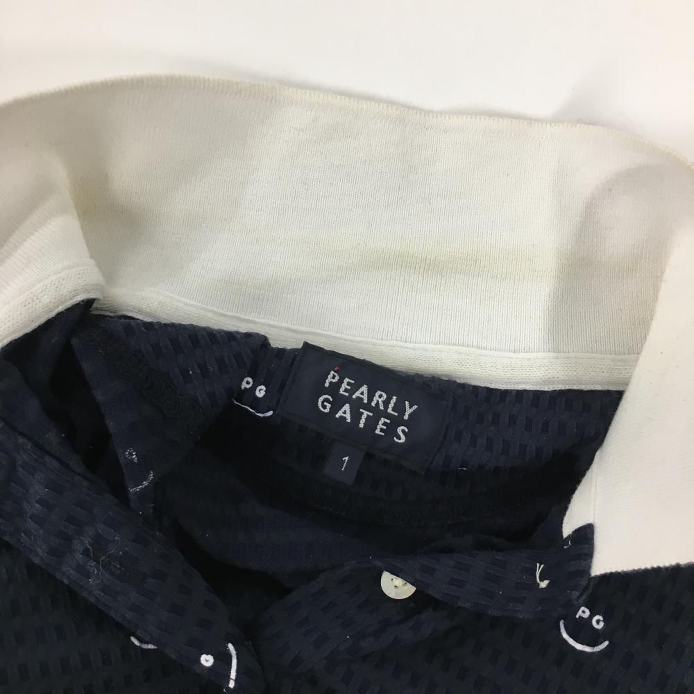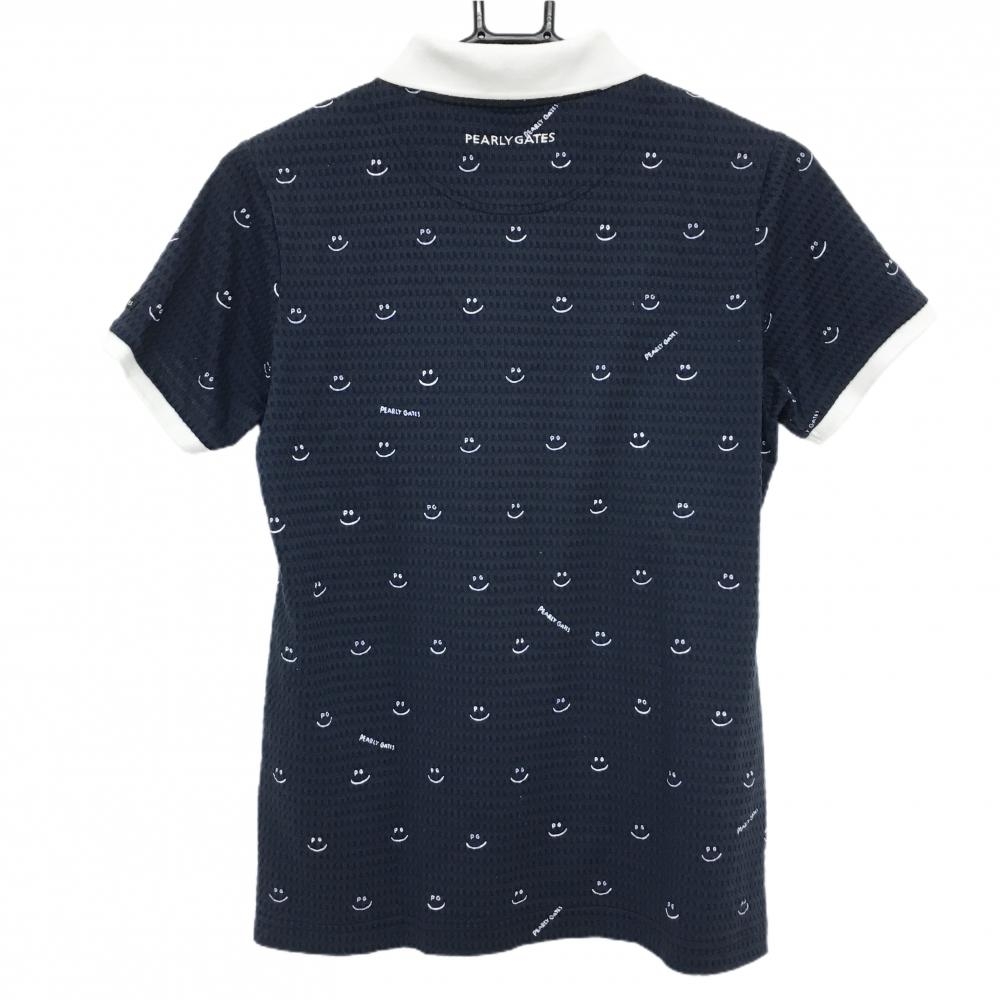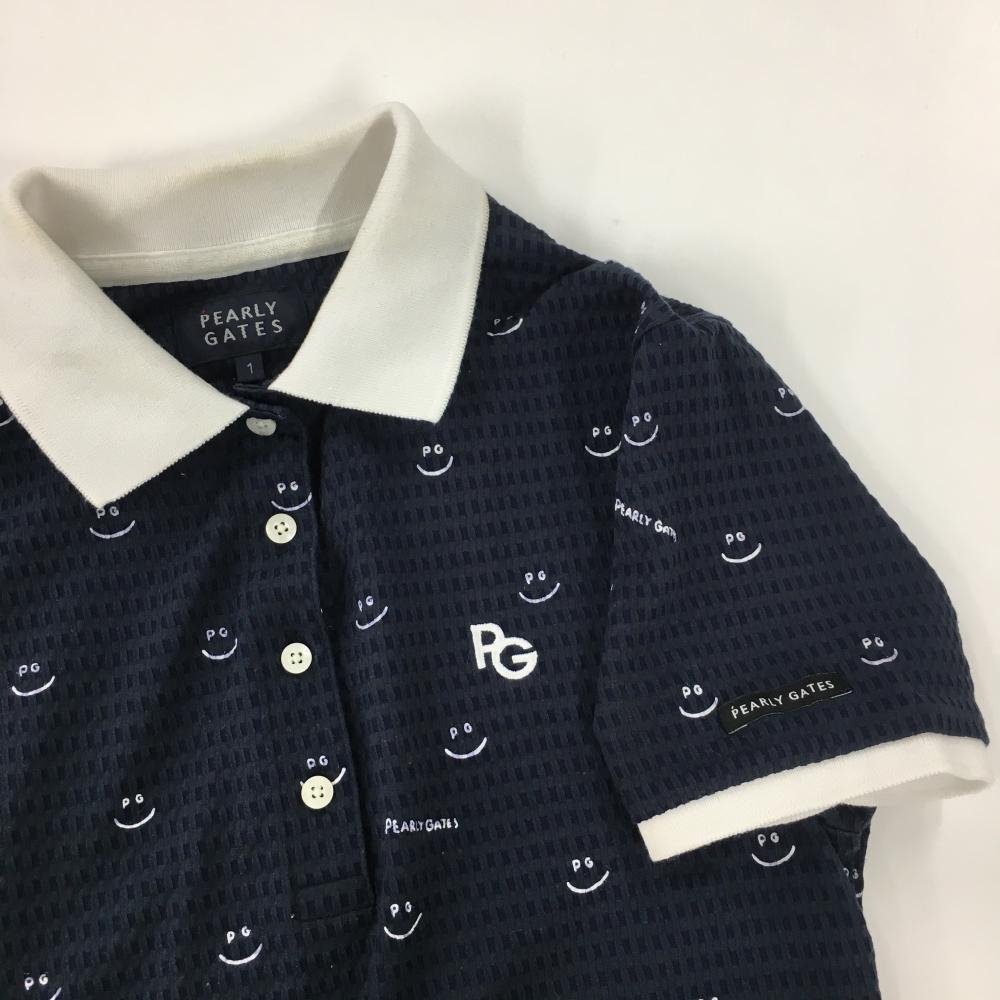 パーリーゲイツ 半袖ポロシャツ ネイビー×白 織生地 ニコちゃん総柄 スマイル レディース 1(M) ゴルフウェア 2023年モデル PEARLY GATES