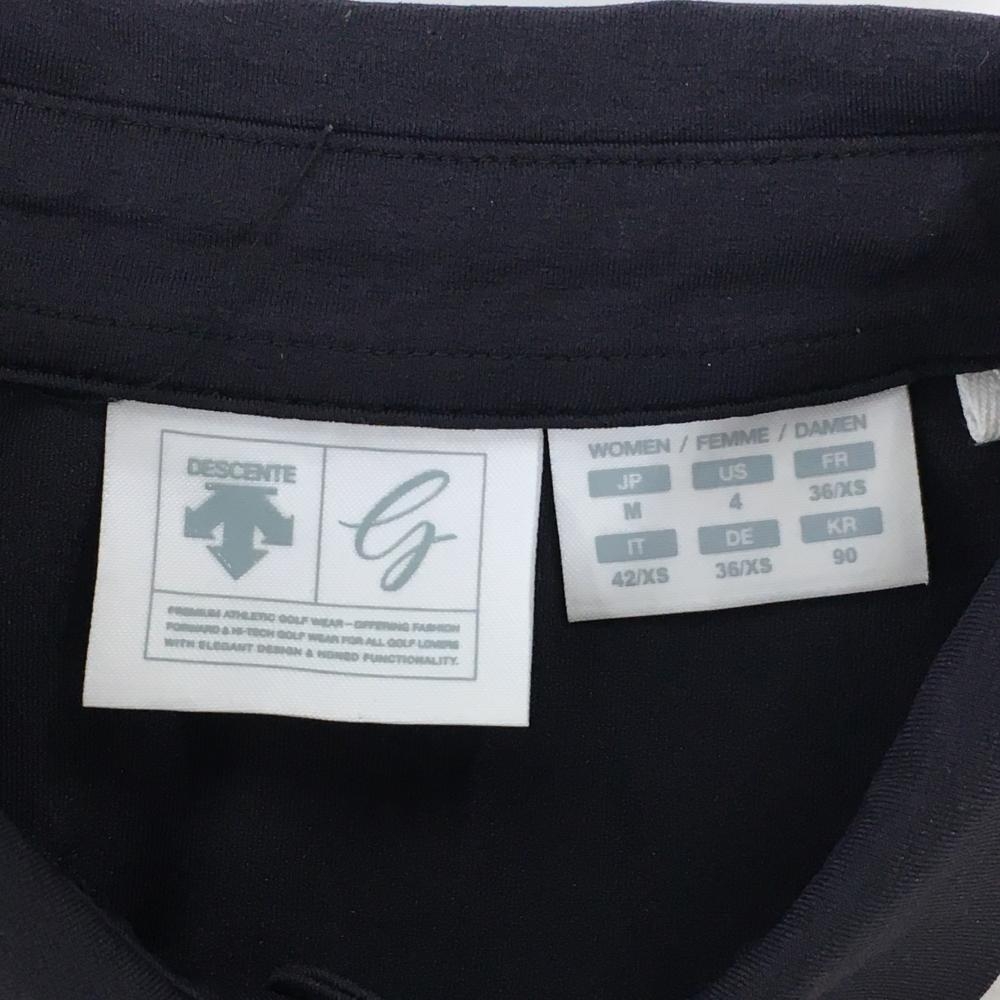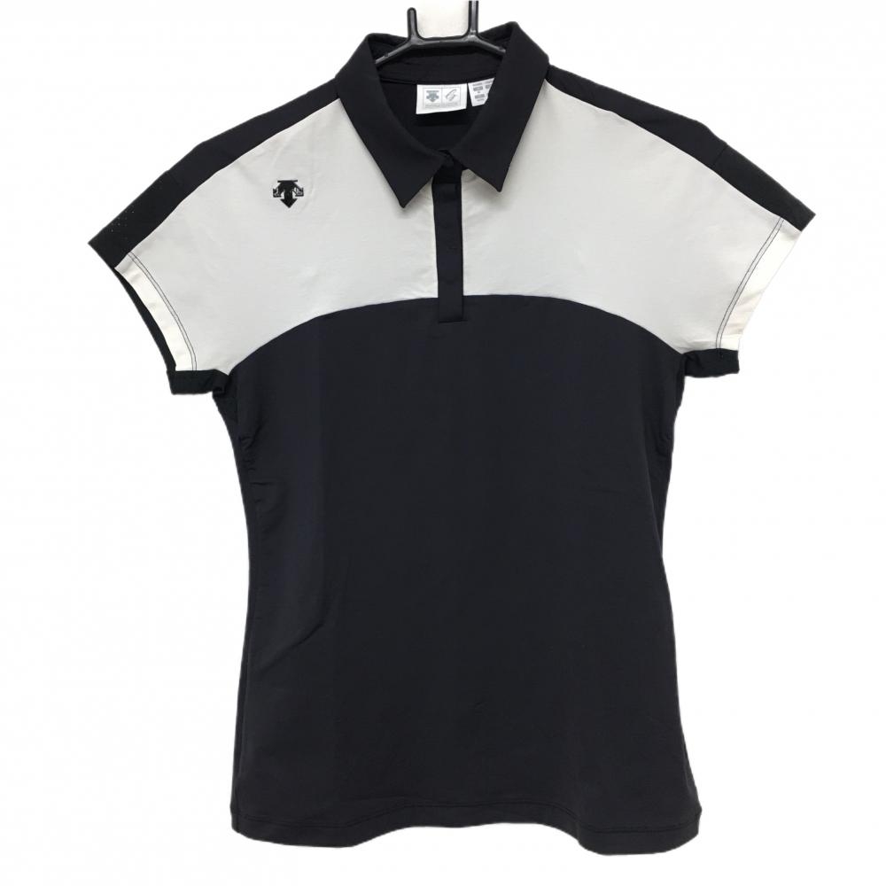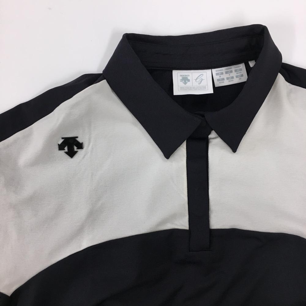 【超美品】デサントゴルフ 半袖ポロシャツ ネイビー×ライトグレー 袖一部パンチング ストレッチ レディース M ゴルフウェア DESCENTE