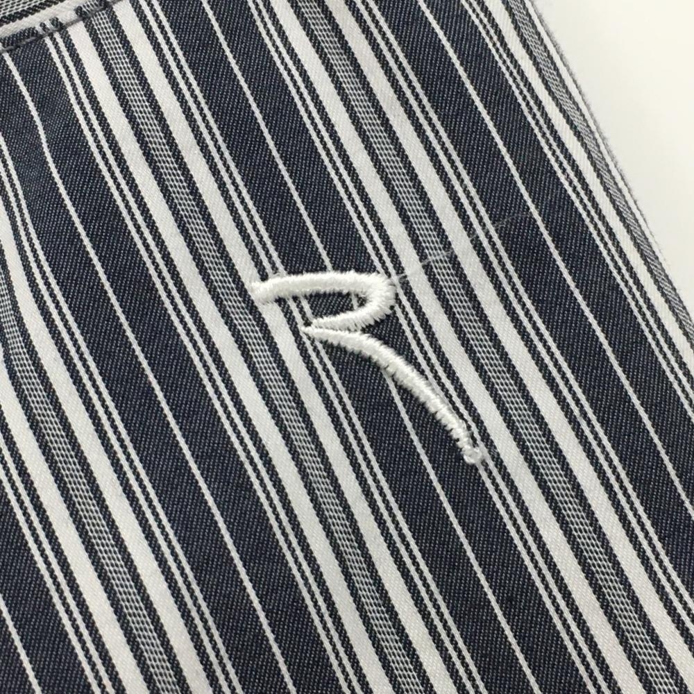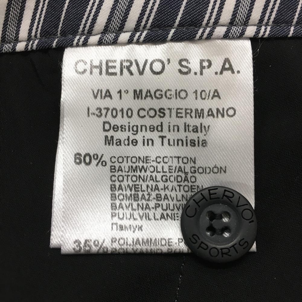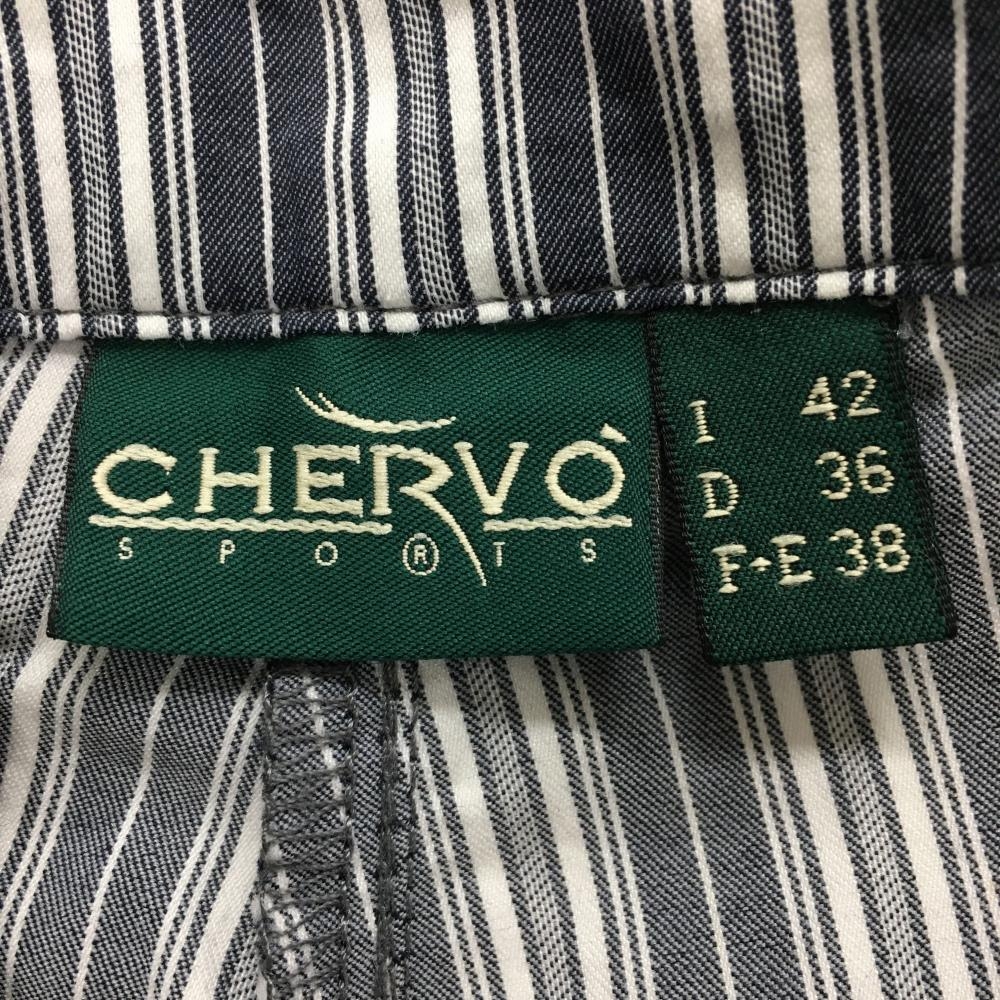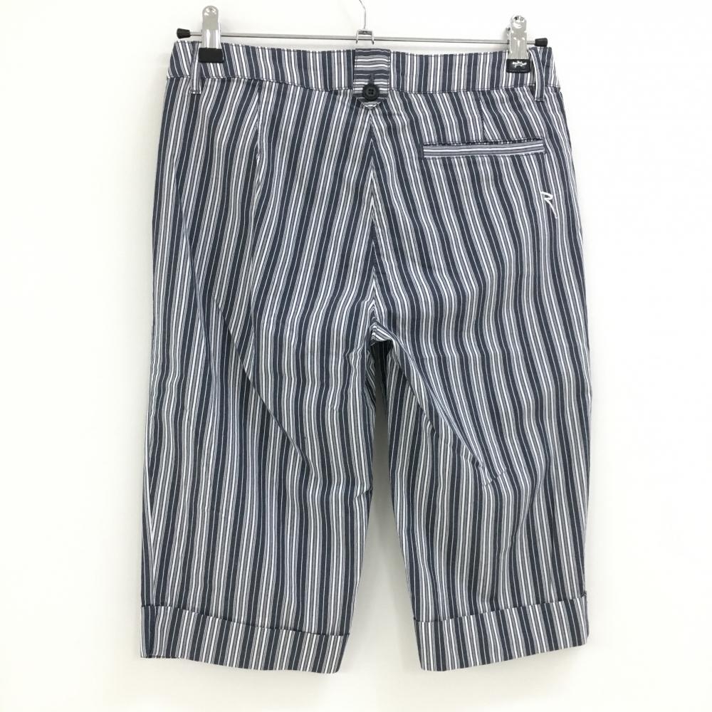 【美品】シェルボ 半端丈パンツ ネイビー系×白 ストライプ レディース USA-S ゴルフウェア CHERVO