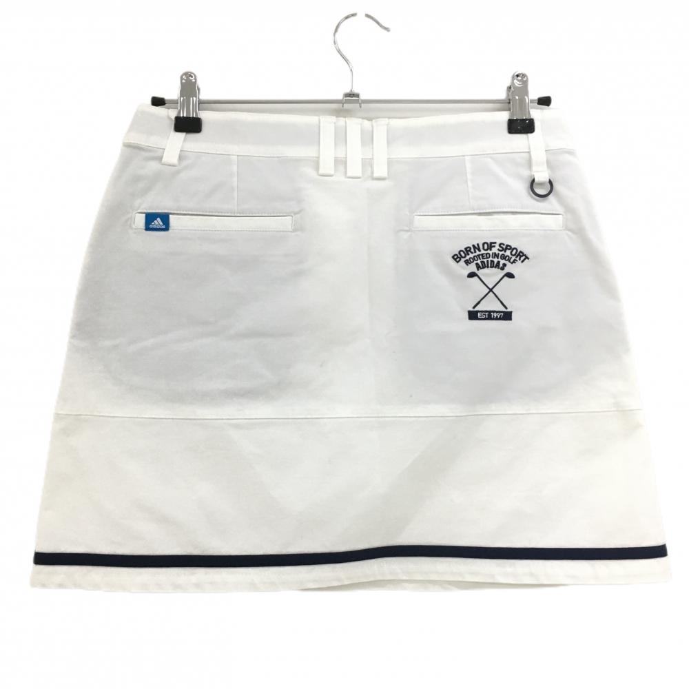 アディダス スカート 白×ネイビー 裾ライン 一部プリーツ レディース L/G ゴルフウェア adidas
