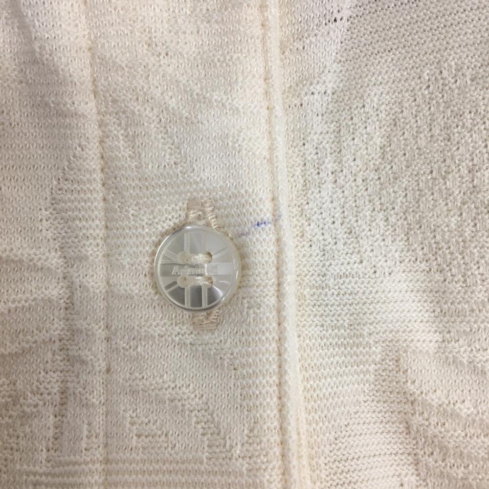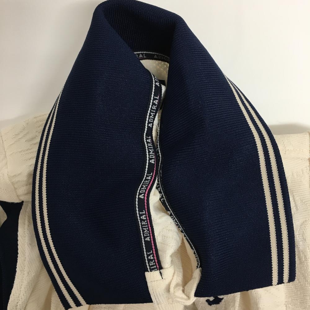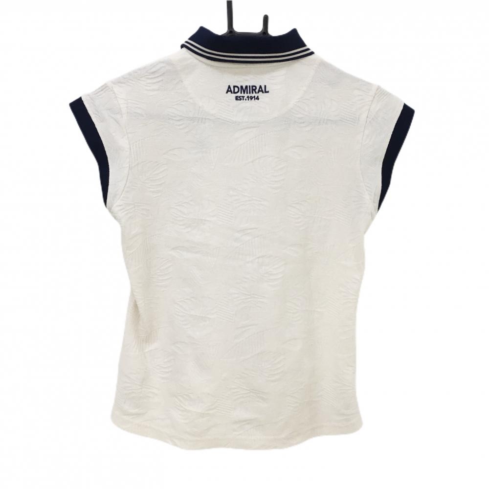 【美品】アドミラル ノースリーブポロシャツ アイボリー×ネイビー リーフ柄織生地 レディース M ゴルフウェア Admiral