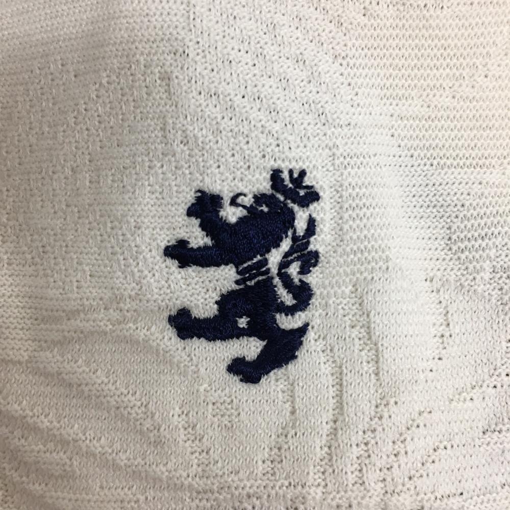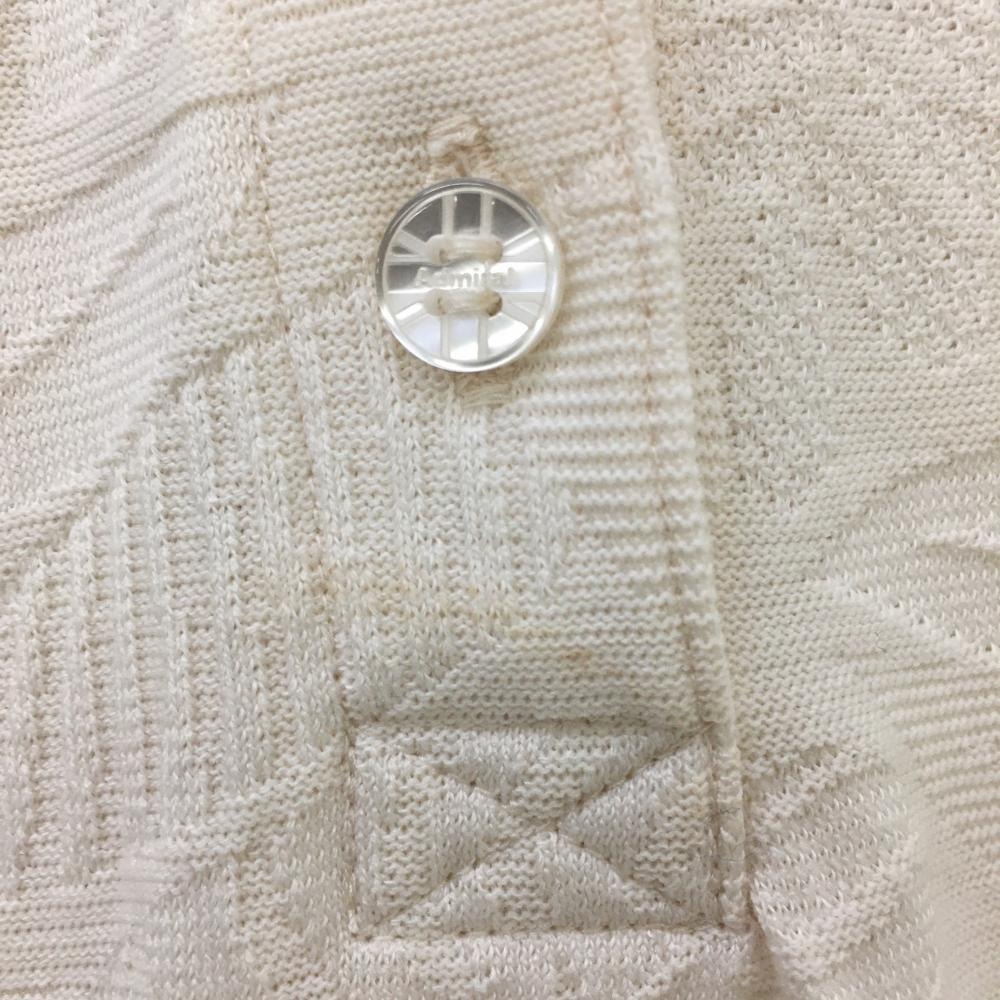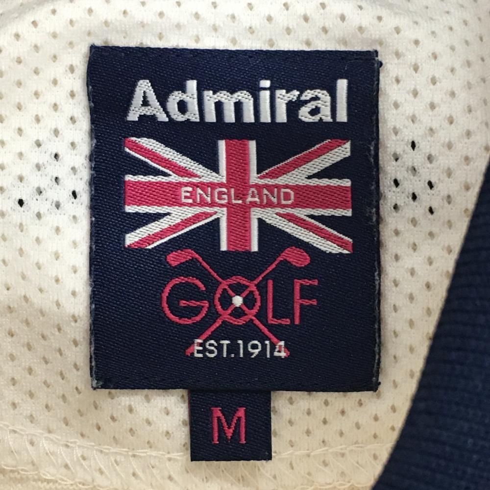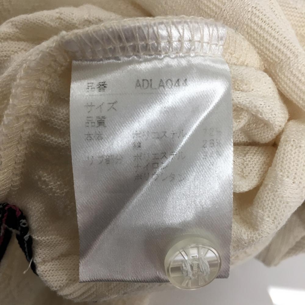 【美品】アドミラル ノースリーブポロシャツ アイボリー×ネイビー リーフ柄織生地 レディース M ゴルフウェア Admiral