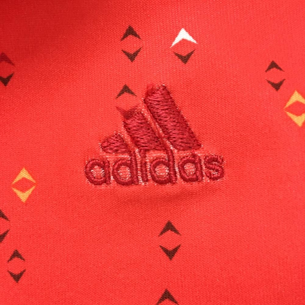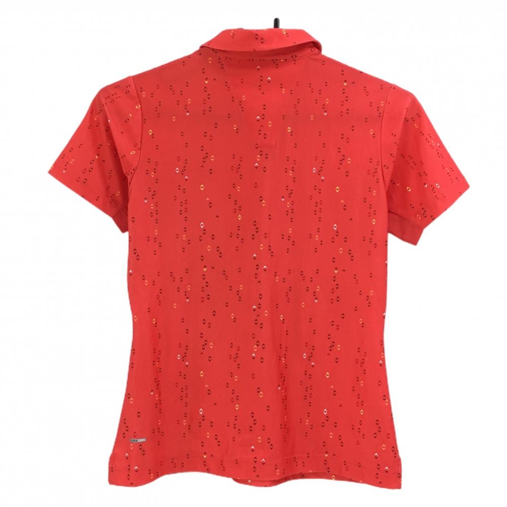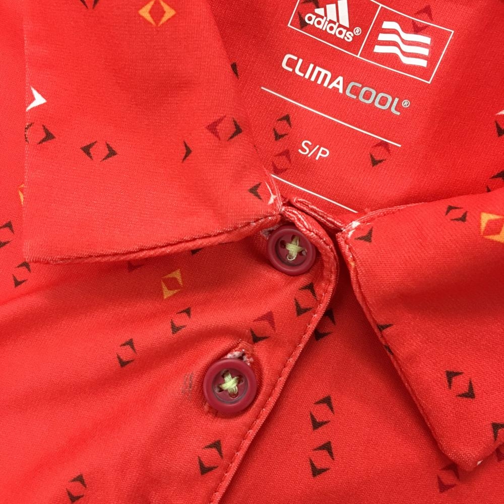 アディダス 半袖ポロシャツ レッド×黒 総柄 総柄 袖下メッシュ レディース S/P ゴルフウェア adidas