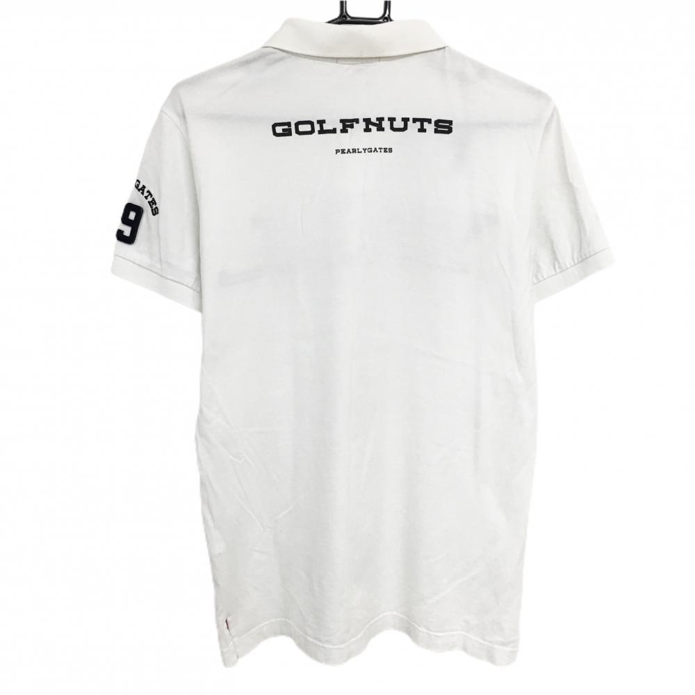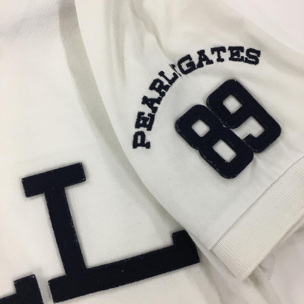 パーリーゲイツ 半袖ポロシャツ 白×ダークネイビー ビッグフェルトワッペン コットン100% メンズ 4(M) ゴルフウェア PEARLY GATES