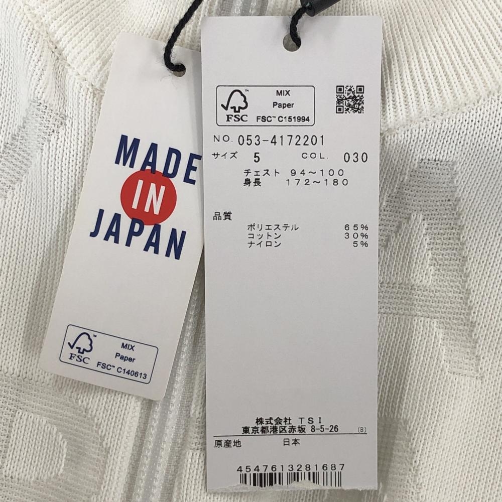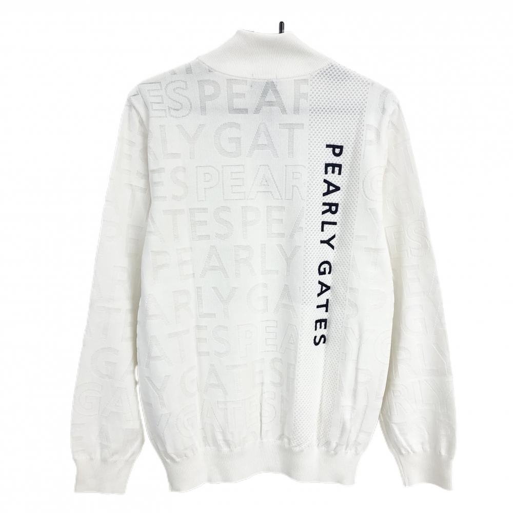 【新品】パーリーゲイツ ニットジャケット 白 ロゴ総柄 一部メッシュ調 コットン混 メンズ 5(L) ゴルフウェア 2024年モデル PEARLY GATES