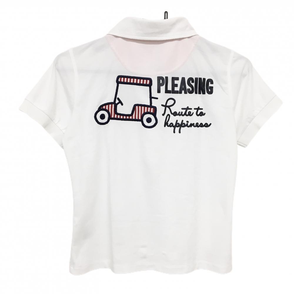 【美品】ルコックゴルフ 半袖ポロシャツ 白×ネイビー カート刺しゅう レディース L ゴルフウェア le coq sportif