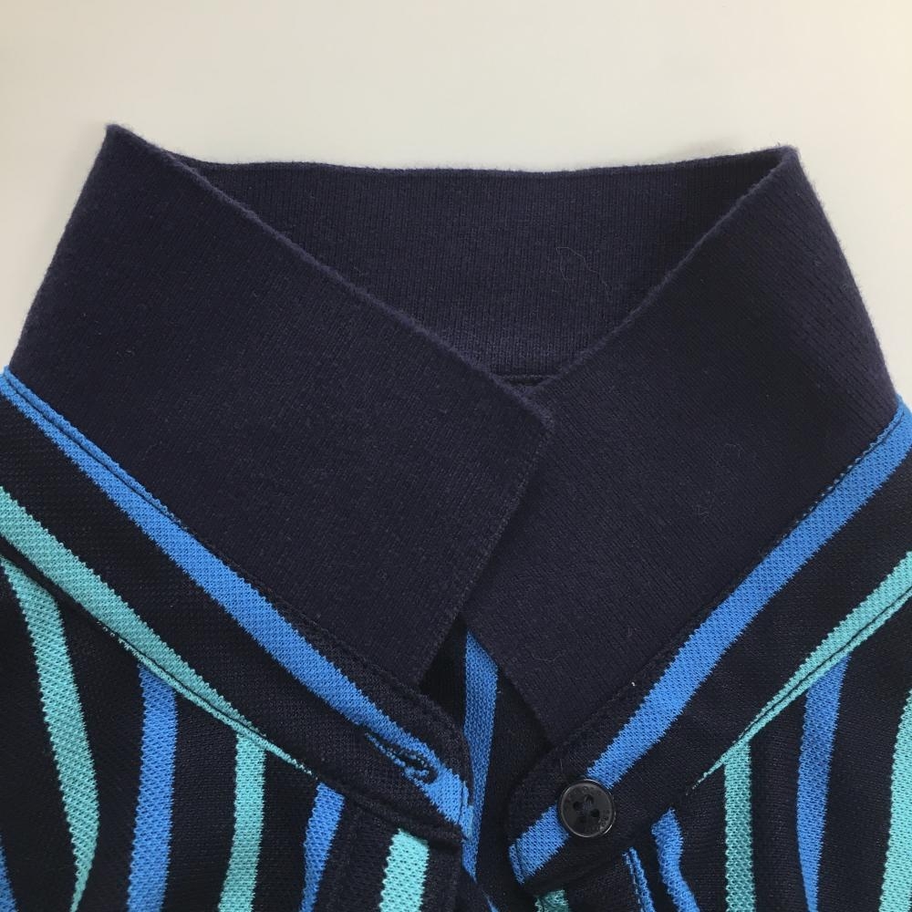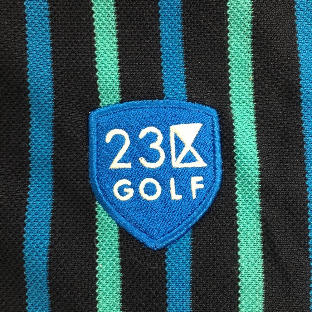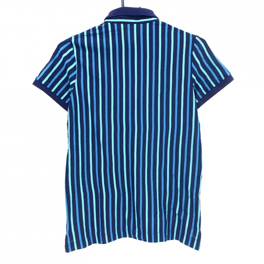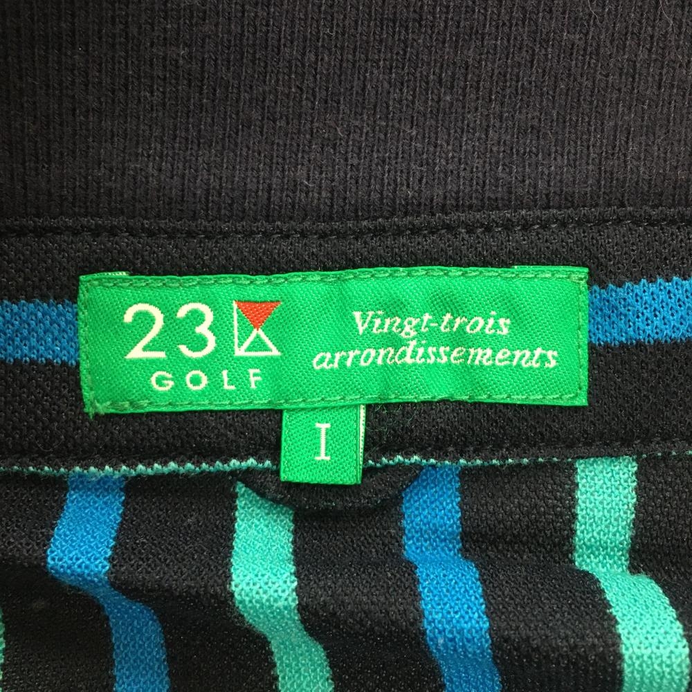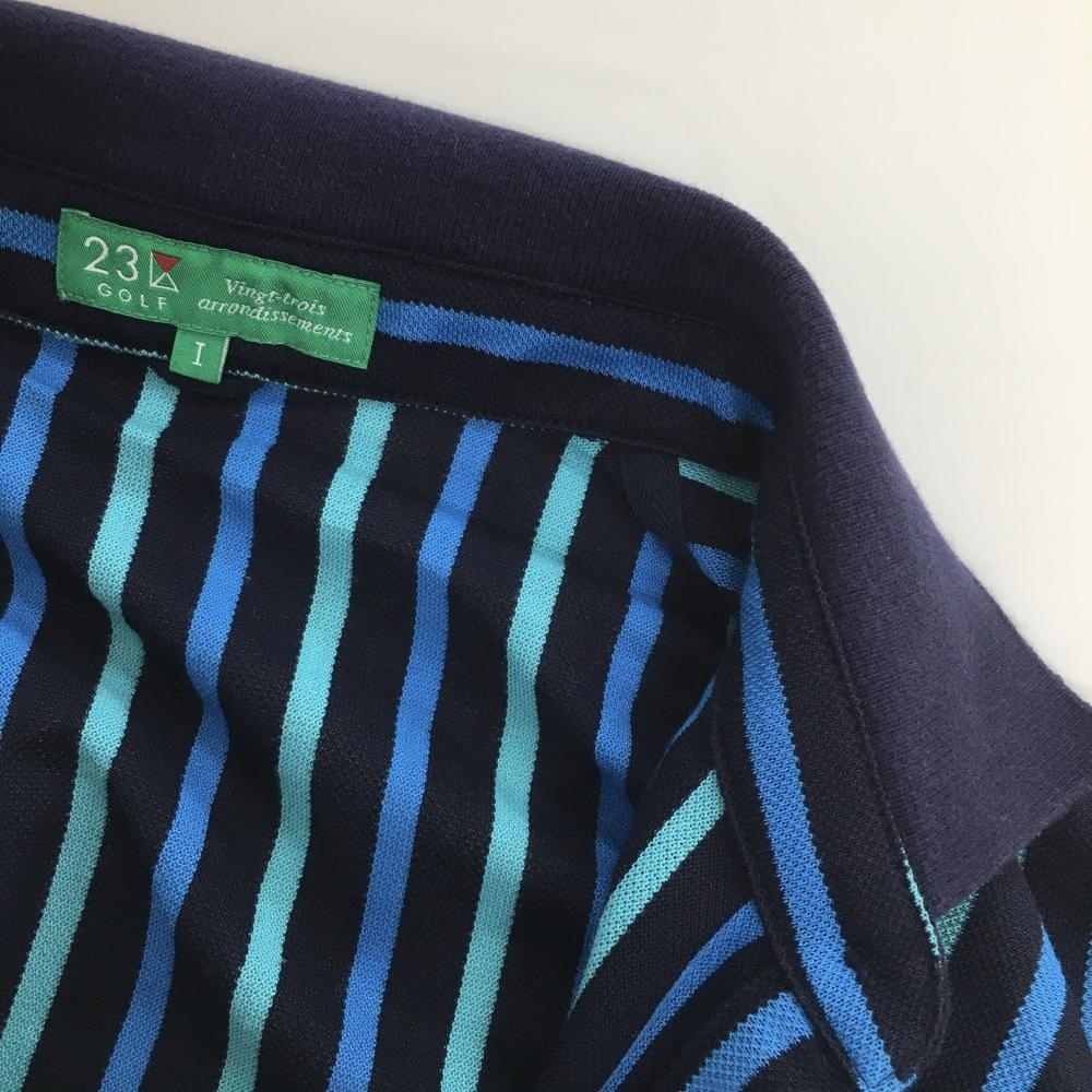 【美品】23区ゴルフ 半袖ポロシャツ ネイビー×ライトブルー ストライプ レディース I(M) ゴルフウェア 23区