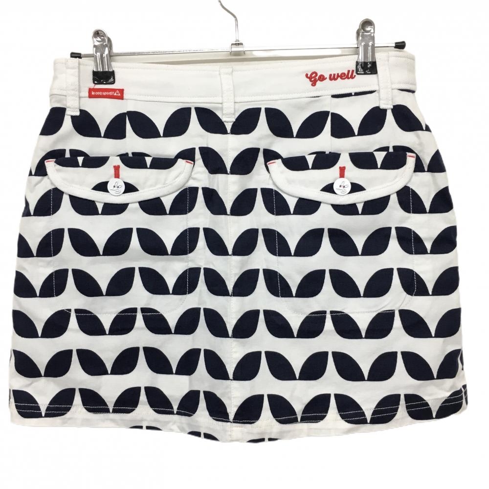 【超美品】ルコック スカート 白×ネイビー 総柄 内側メッシュインナーパンツ レディース 11 ゴルフウェア le coq sportif