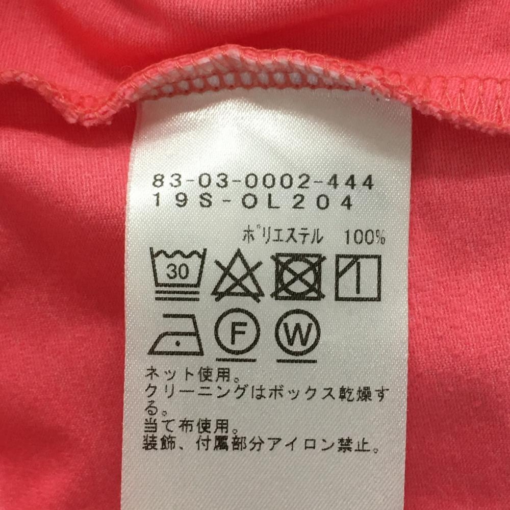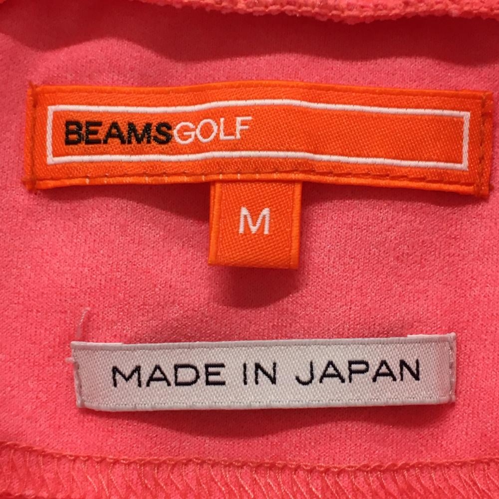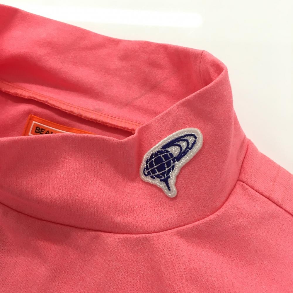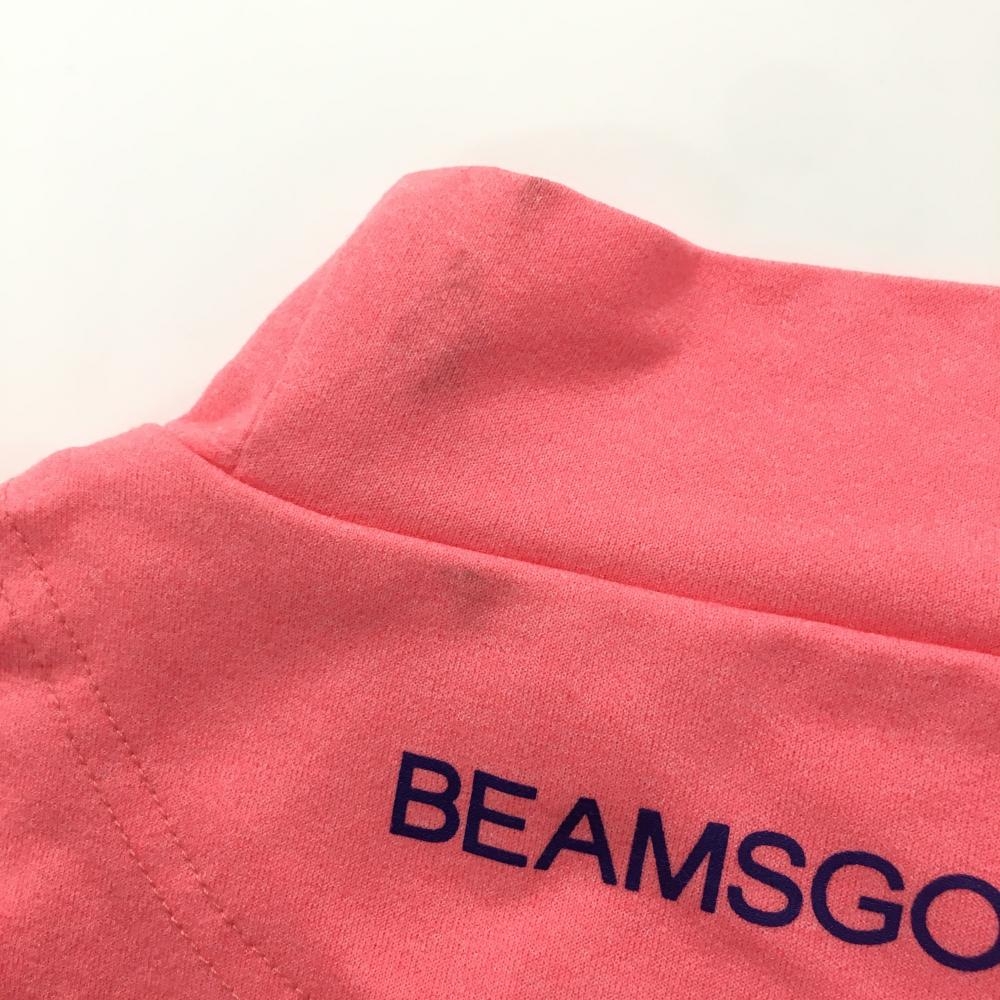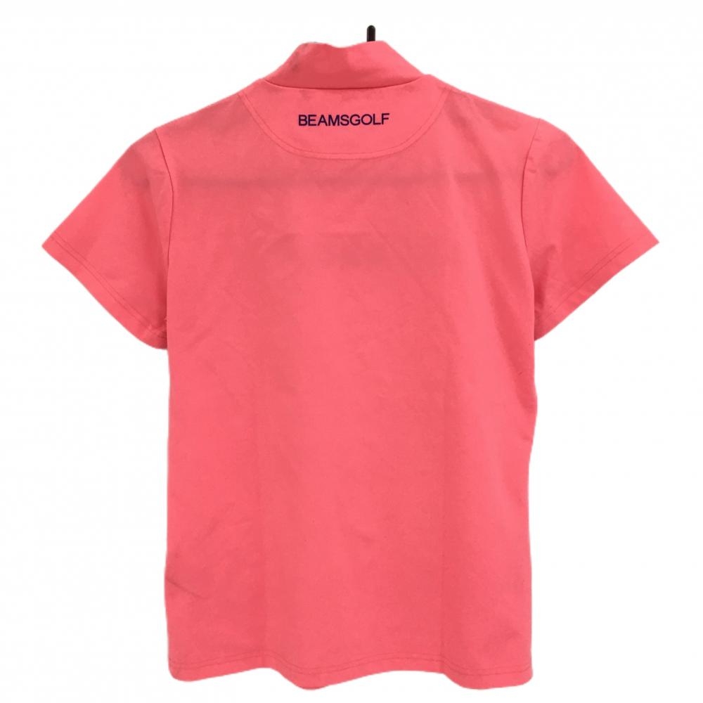 ビームスゴルフ 半袖ハイネックシャツ ピンク×ネイビー ロゴプリント ワッペン レディース M ゴルフウェア BEAMS GOLF