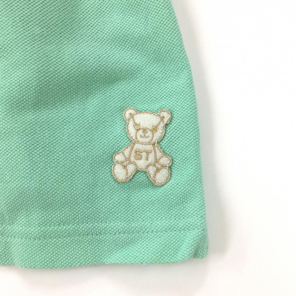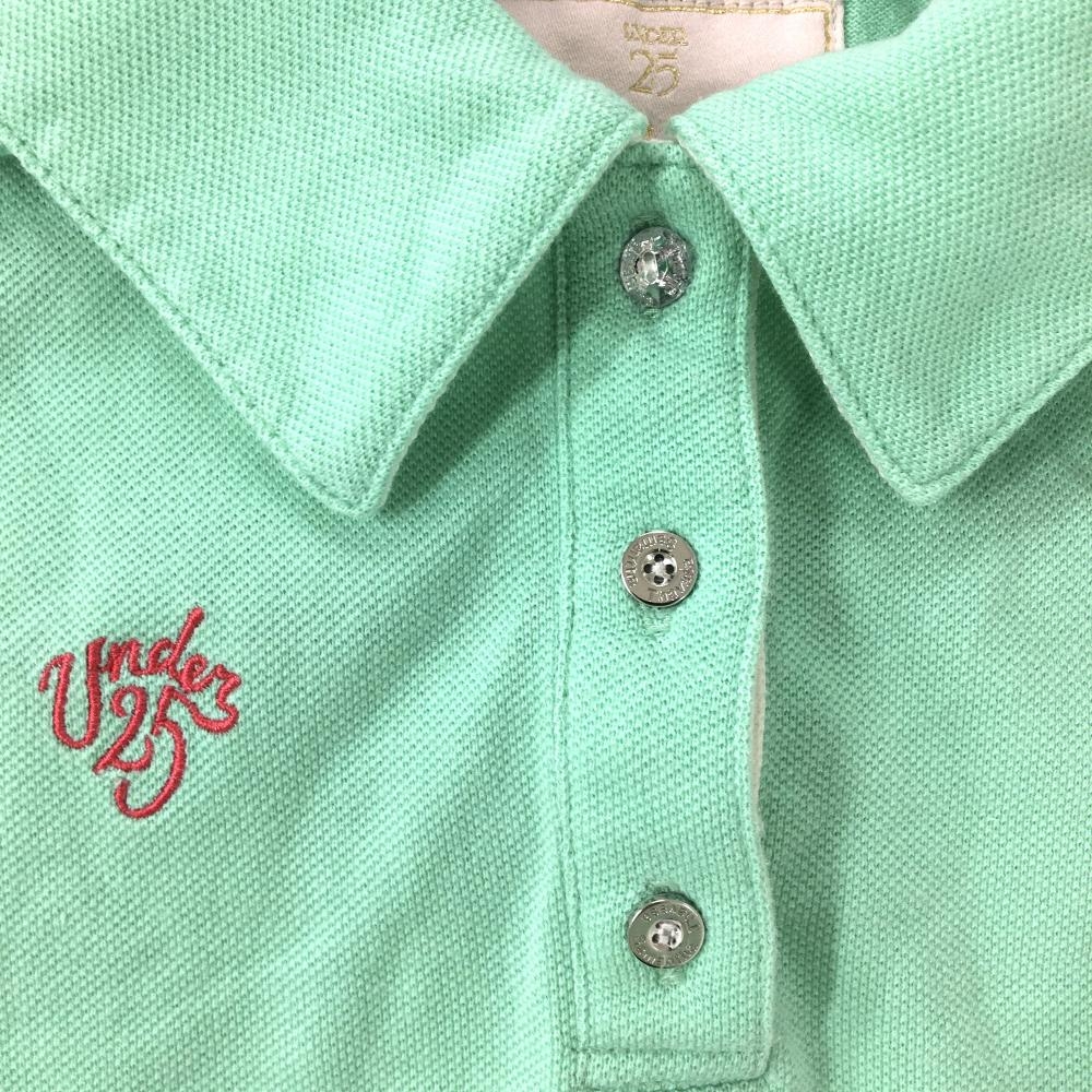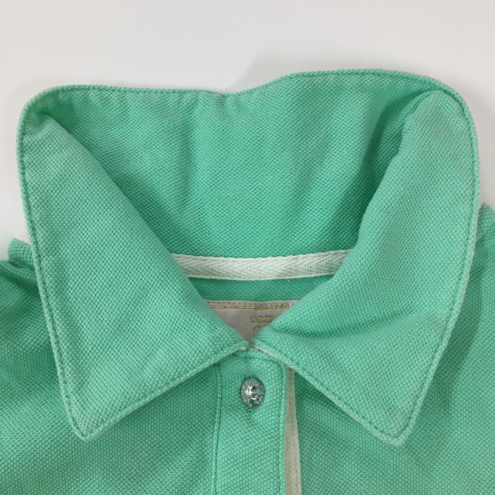 サマンサタバサUNDER25 半袖ポロシャツ ライトグリーン×白 ビッグロゴ レディース S ゴルフウェア Samantha Thavasa