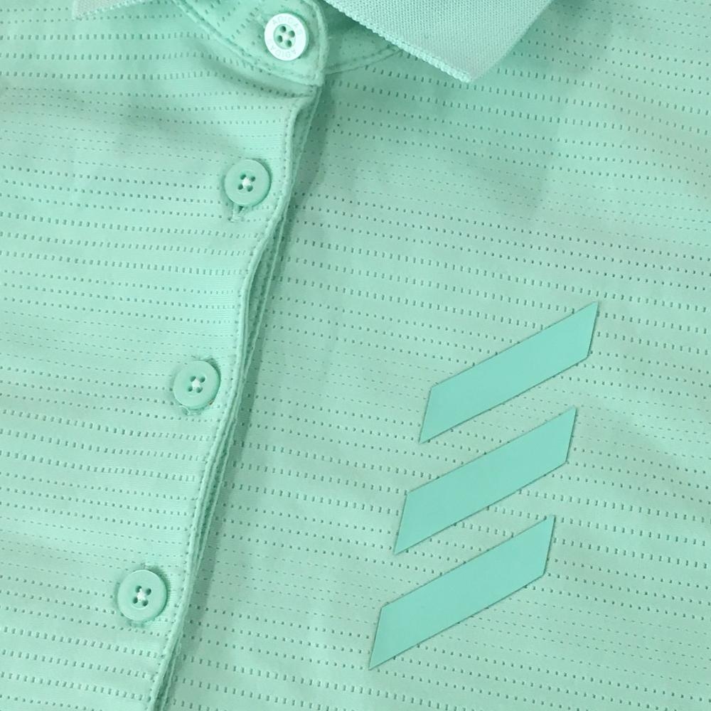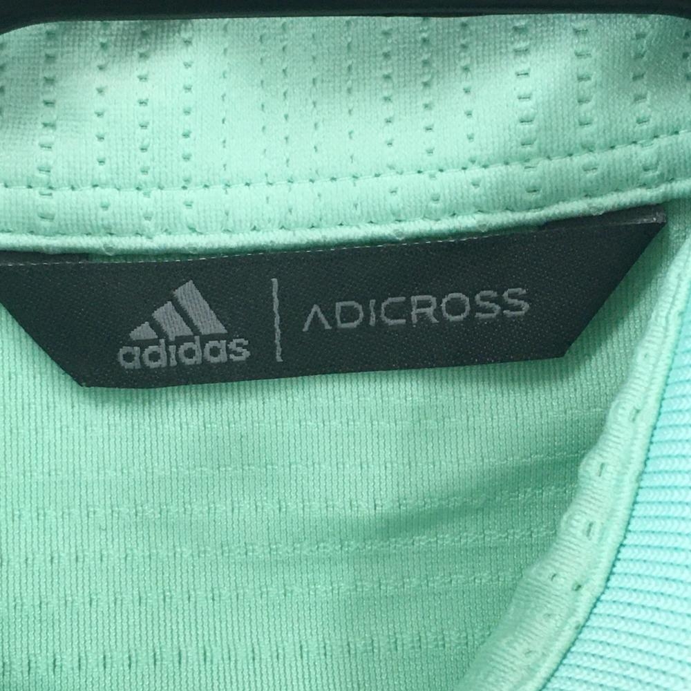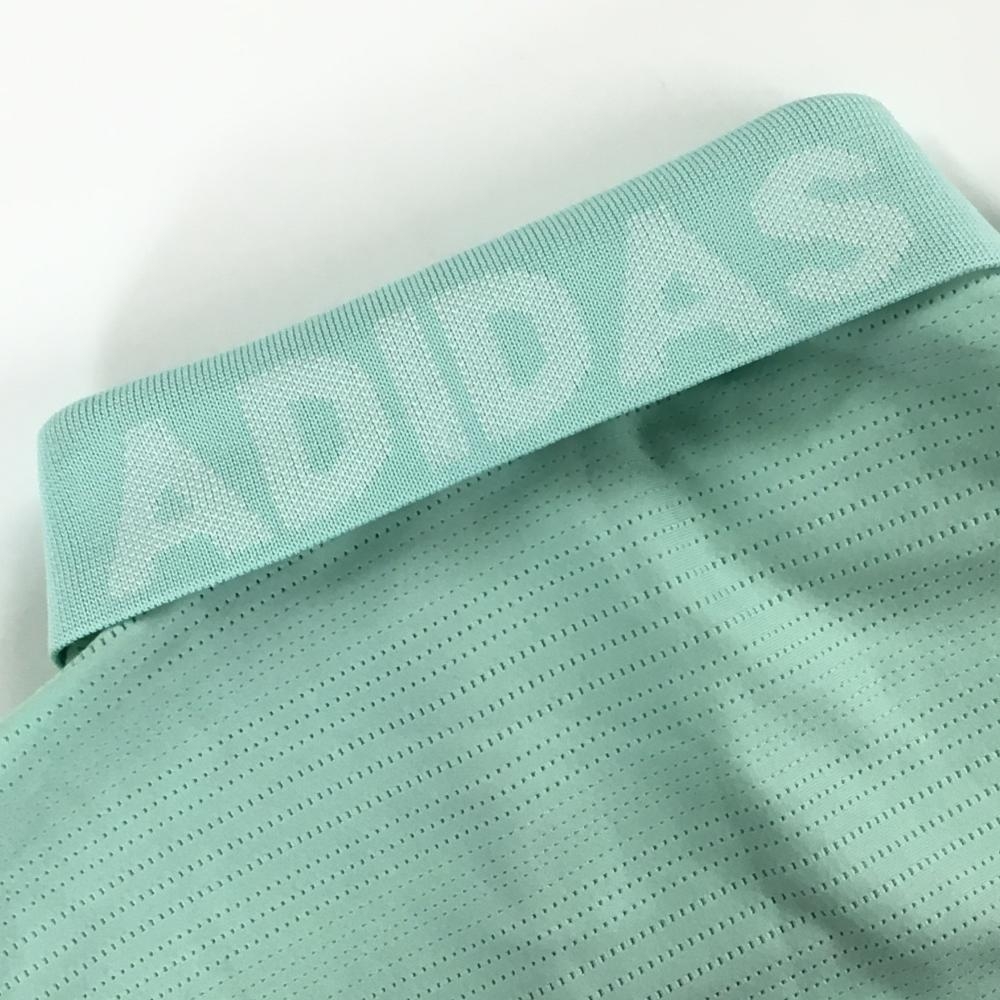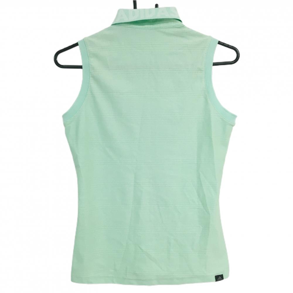 【超美品】アディダス ノースリーブポロシャツ ライトグリーン ボーダー織生地 襟ロゴ レディース M ゴルフウェア adidas