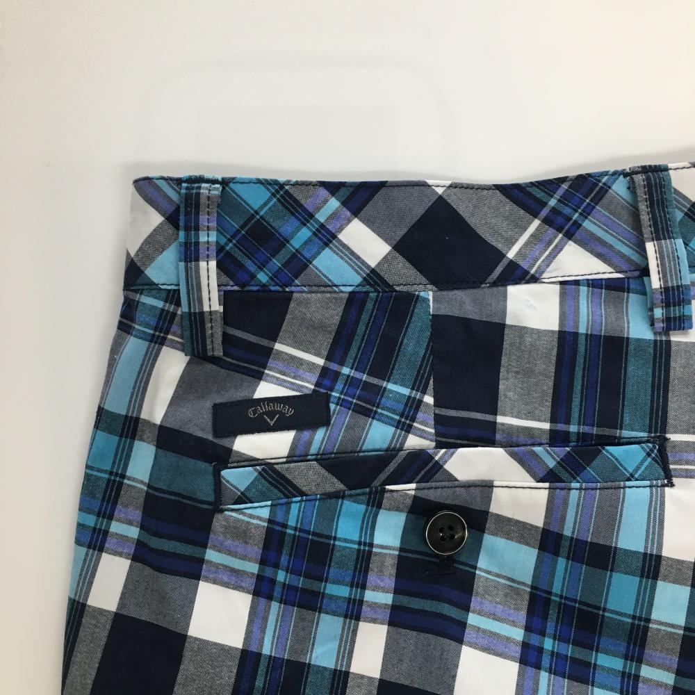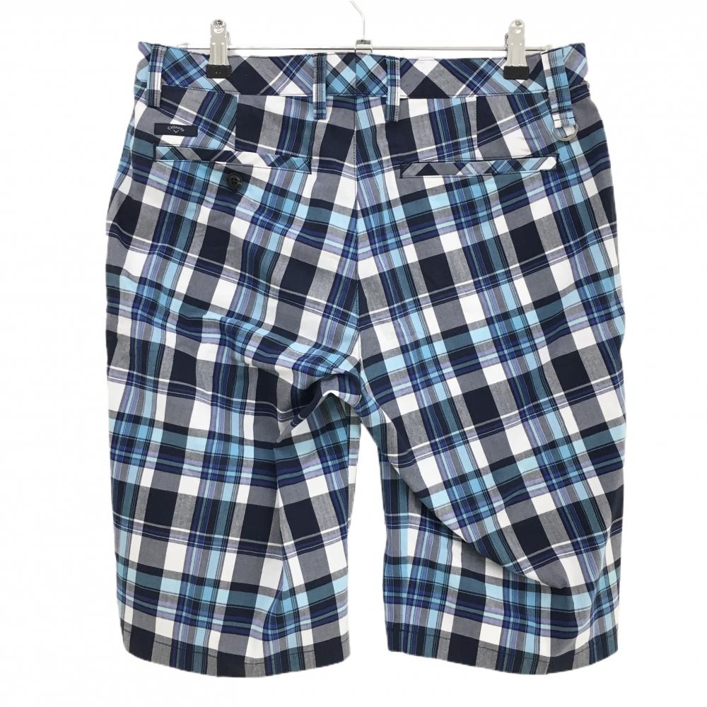 【美品】キャロウェイ ハーフパンツ 白×ネイビー×ブルー チェック ストレッチ メンズ L ゴルフウェア Callaway