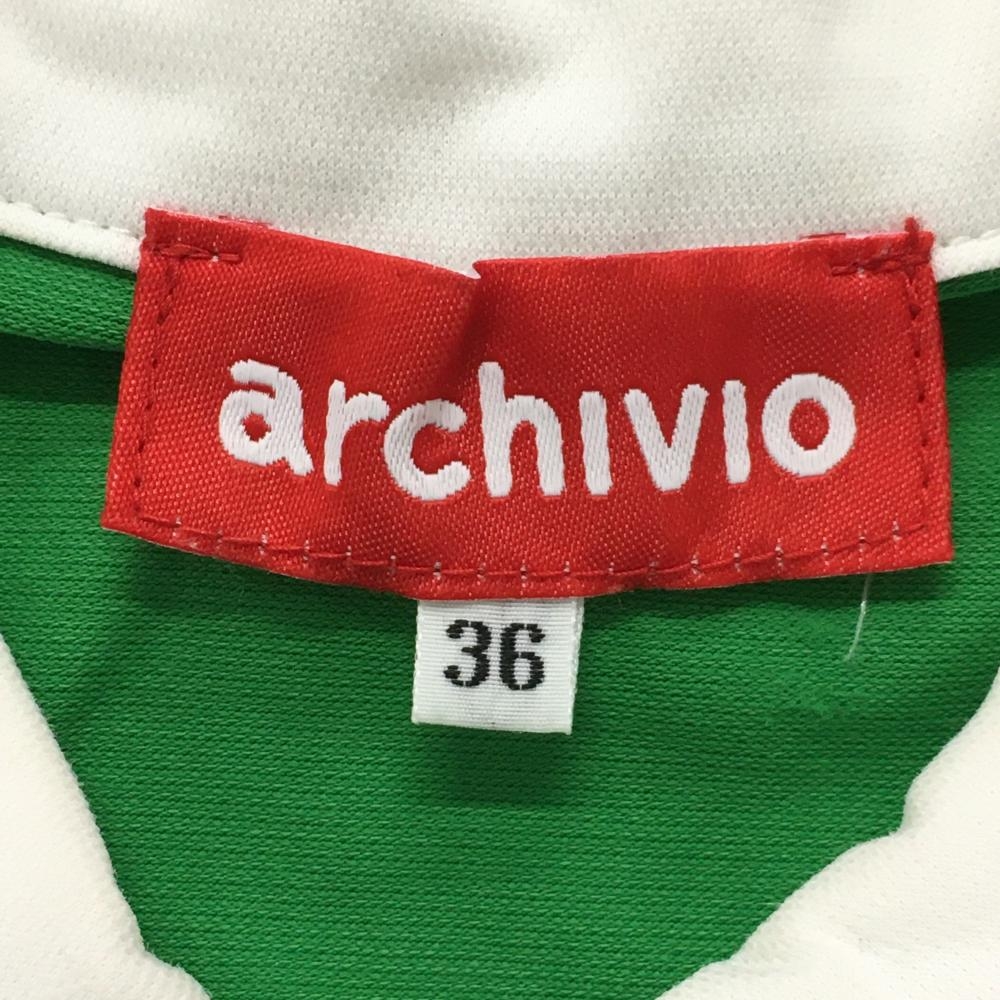 アルチビオ ノースリーブポロシャツ グリーン×白 ロゴプリント レディース 36(S) ゴルフウェア archivio