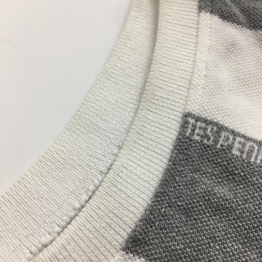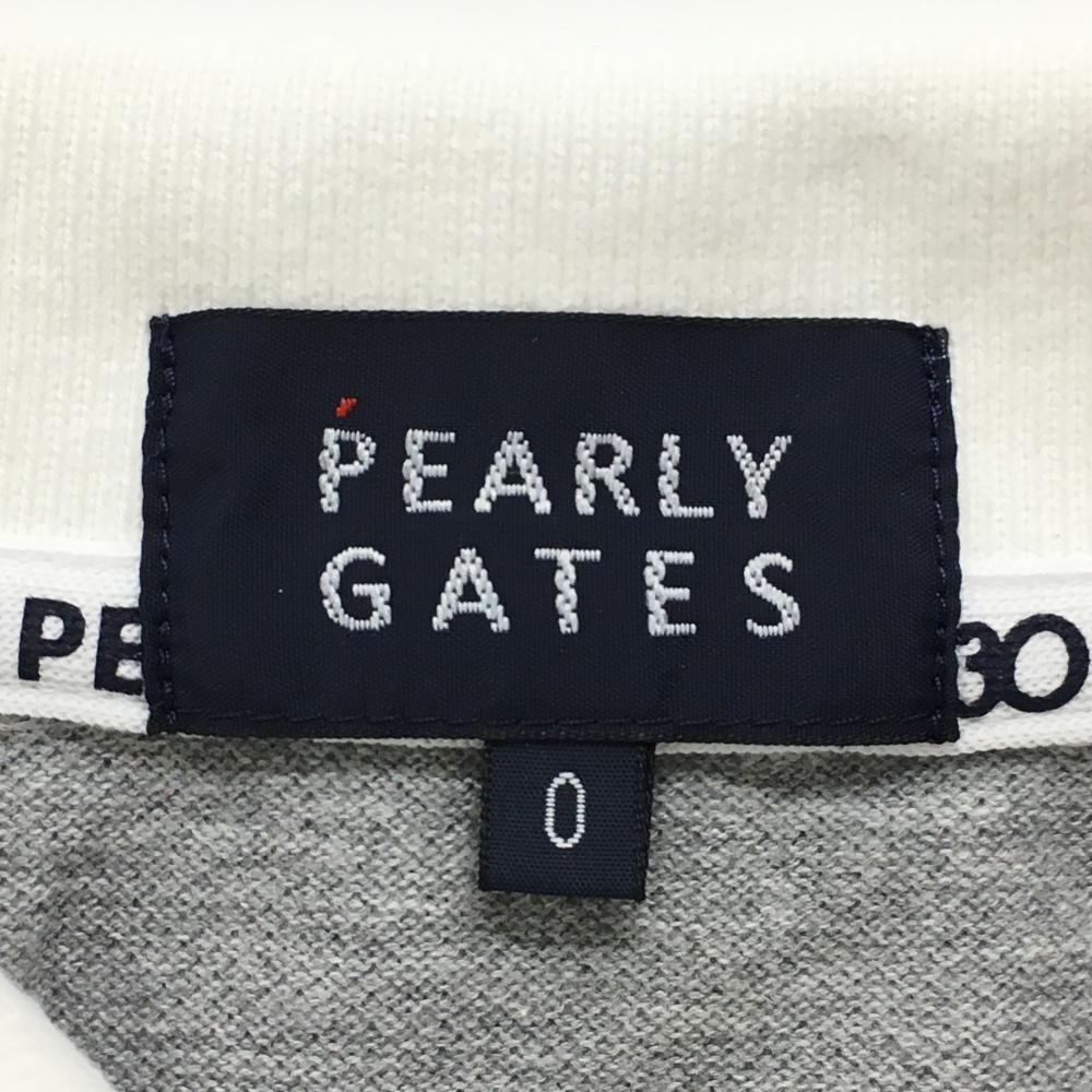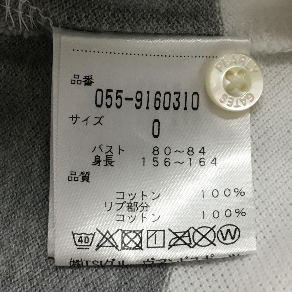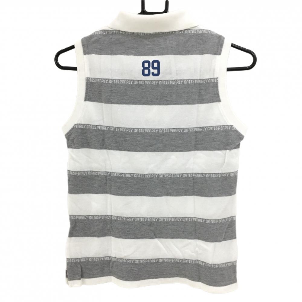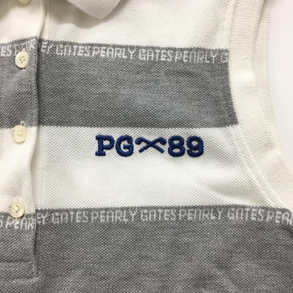 【美品】パーリーゲイツ ノースリーブポロシャツ 白×グレー ボーダー ロゴ刺しゅう レディース 0(S) ゴルフウェア PEARLY GATES