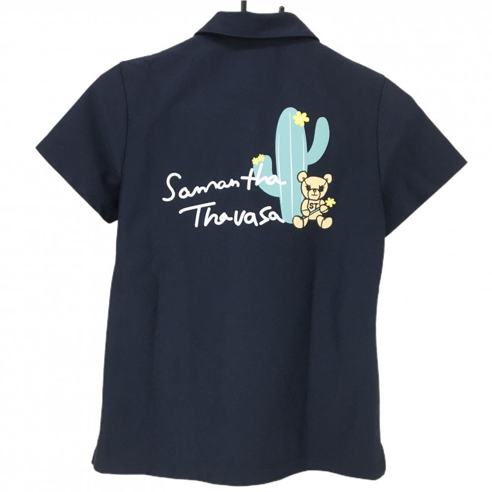 【超美品】サマンサタバサUNDER25 半袖ポロシャツ ネイビー 胸元刺しゅう レディース S ゴルフウェア Samantha Thavasa
