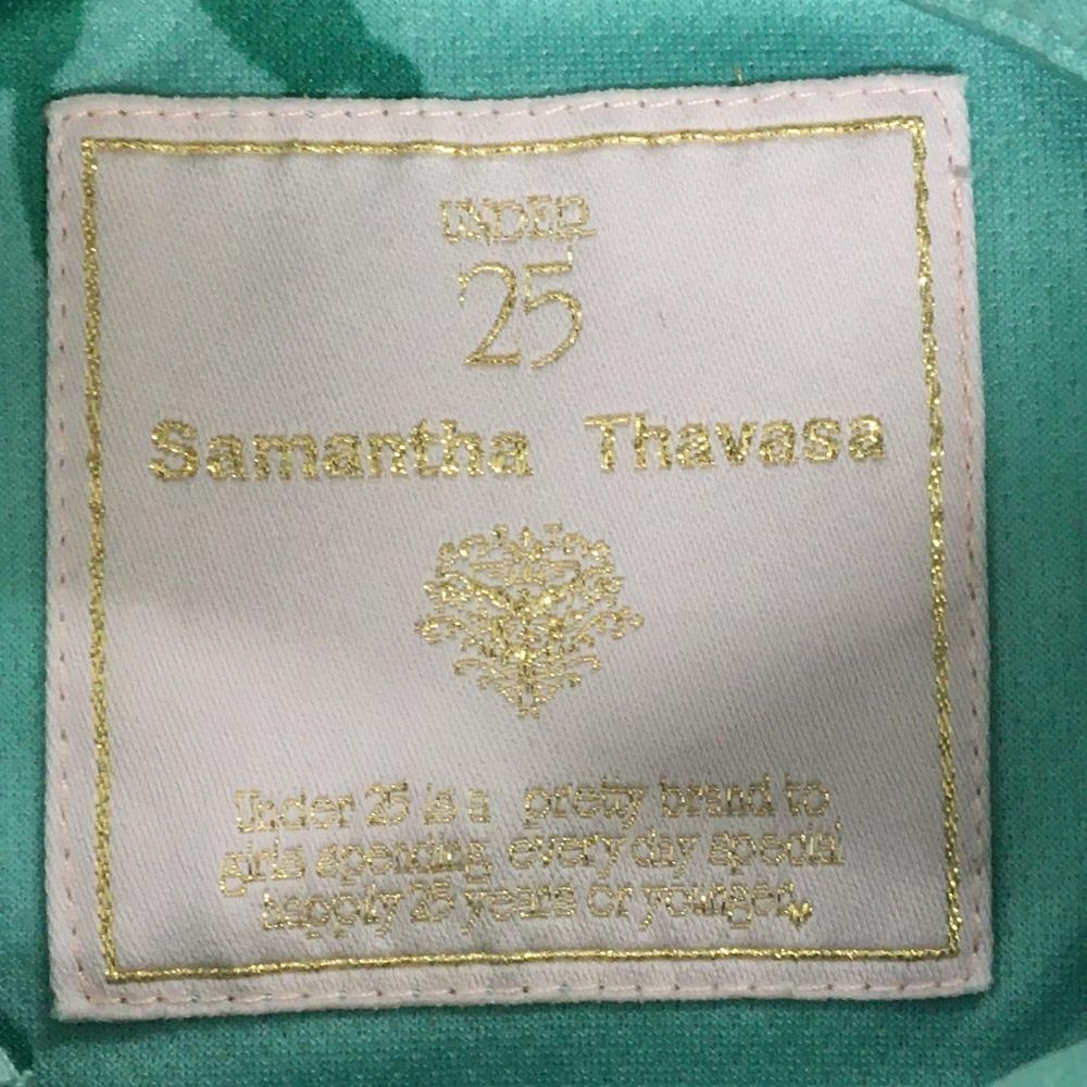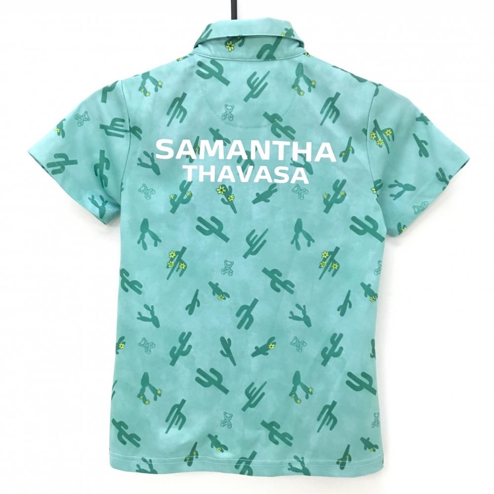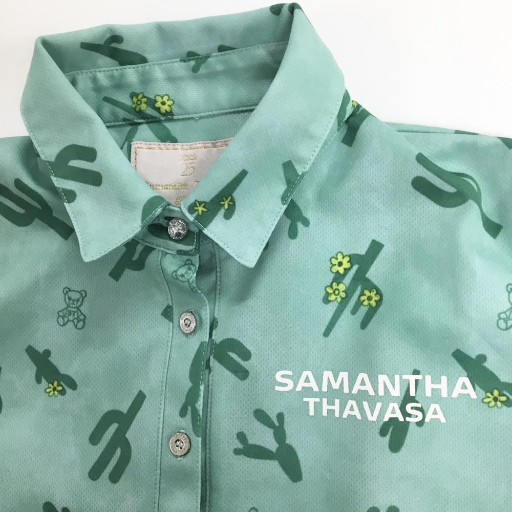 【美品】サマンサタバサUNDER25 半袖ポロシャツ グリーン サボテン柄 ベア ロゴプリント レディース S ゴルフウェア Samantha Thavasa
