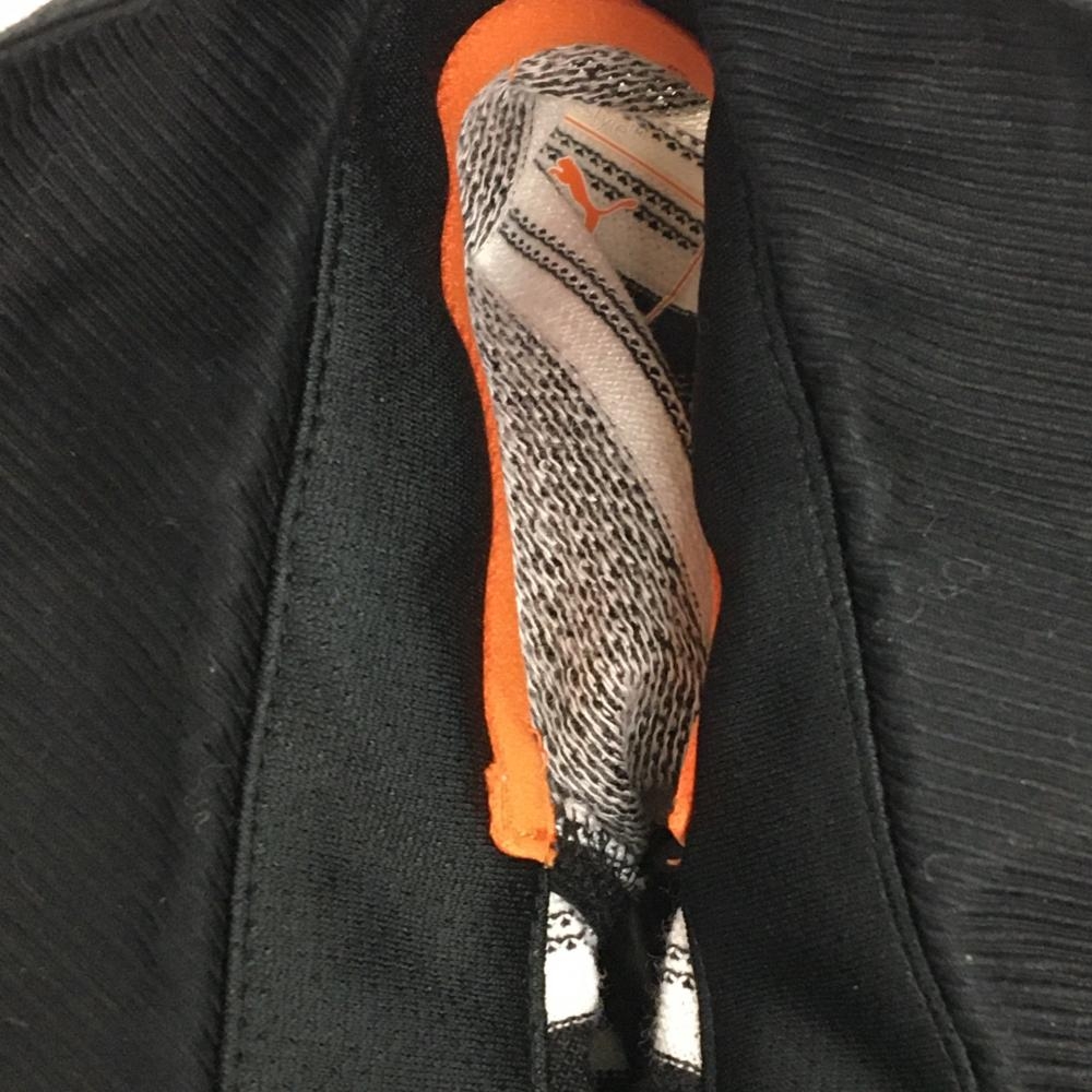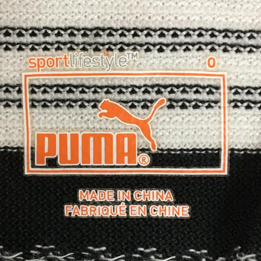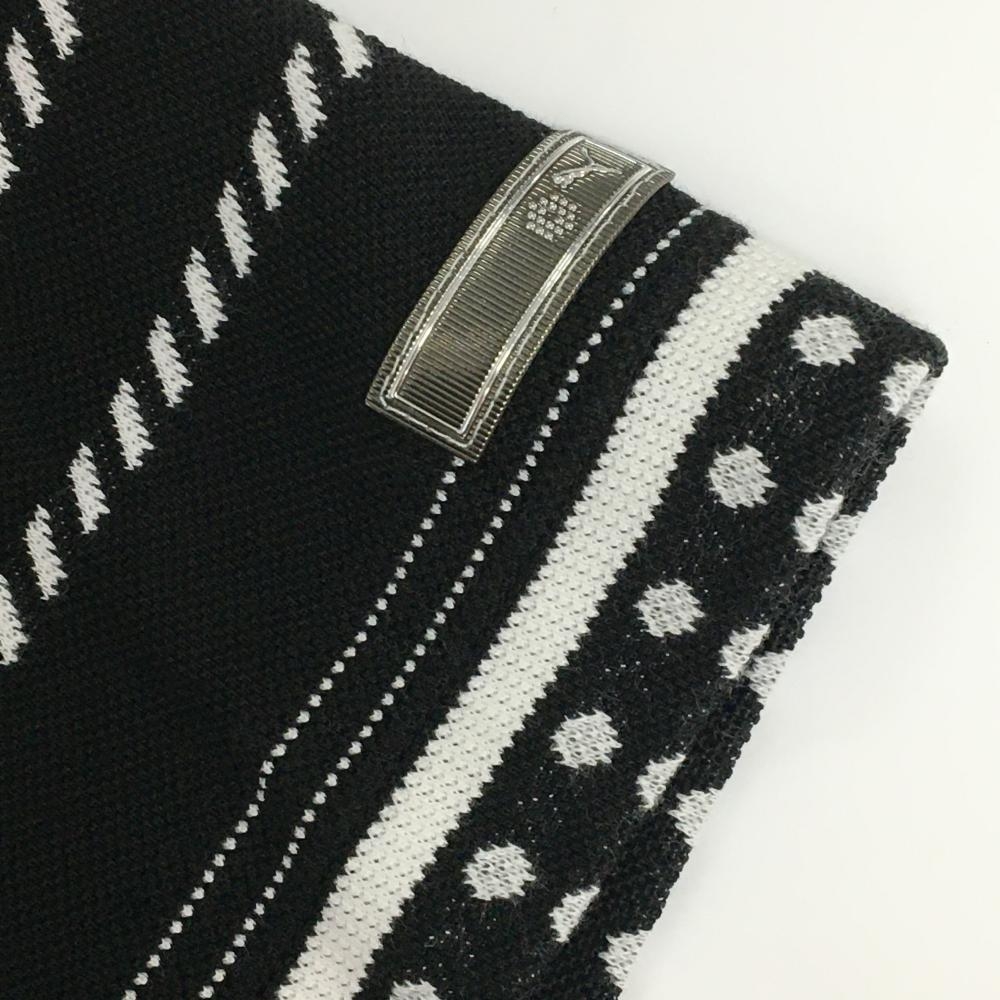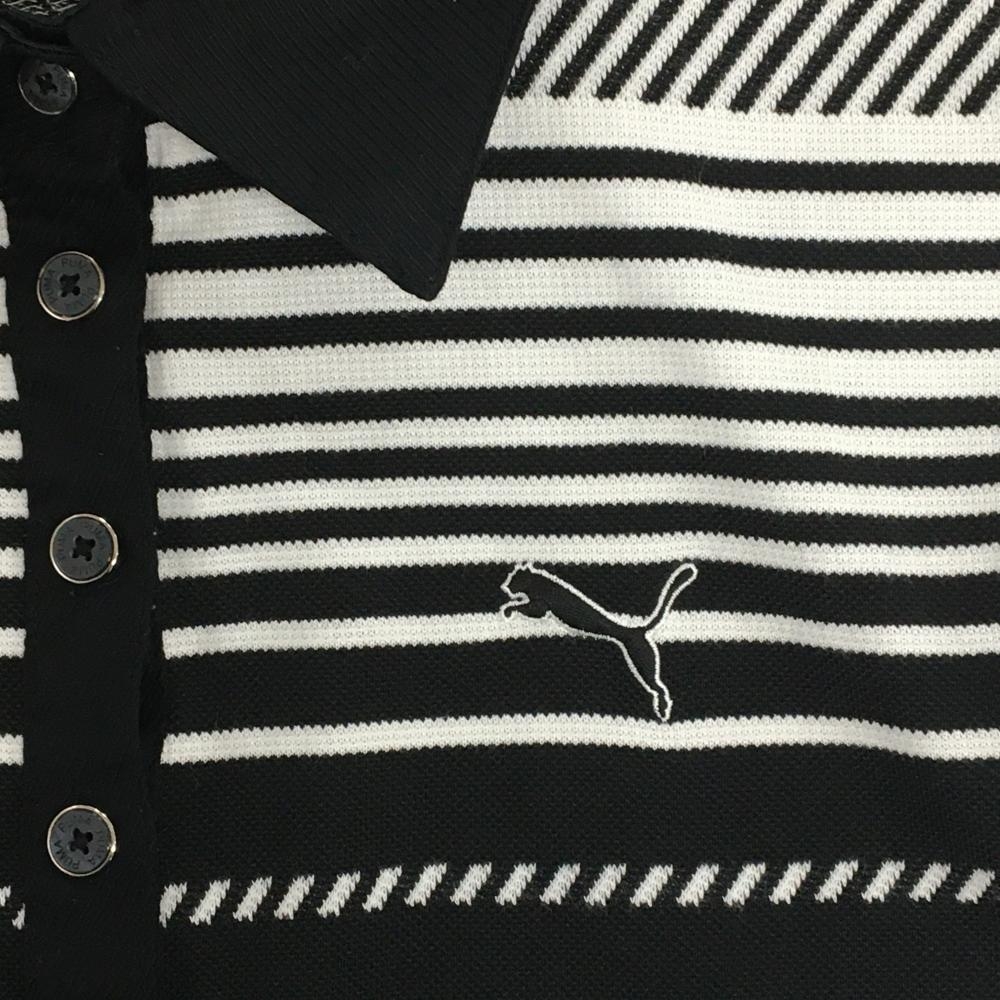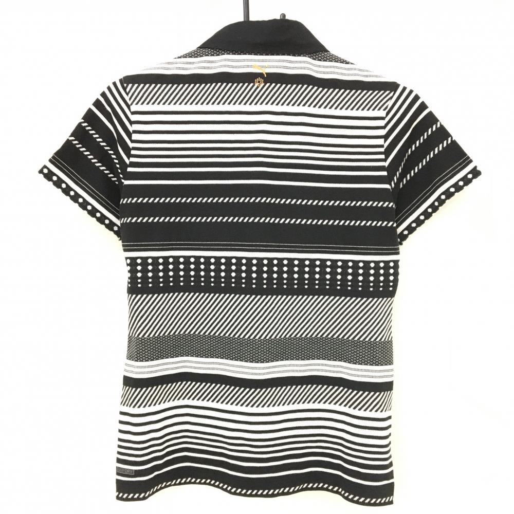 【美品】プーマ 半袖ポロシャツ 黒×白 ランダムボーダー ロゴ刺しゅう レディース O(XL) ゴルフウェア PUMA