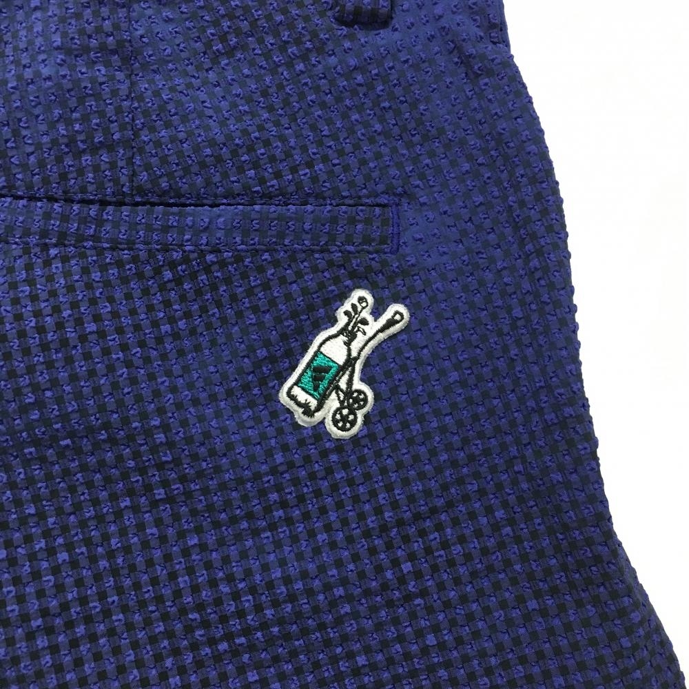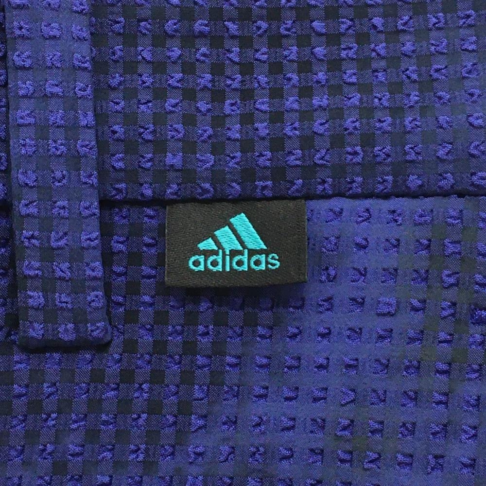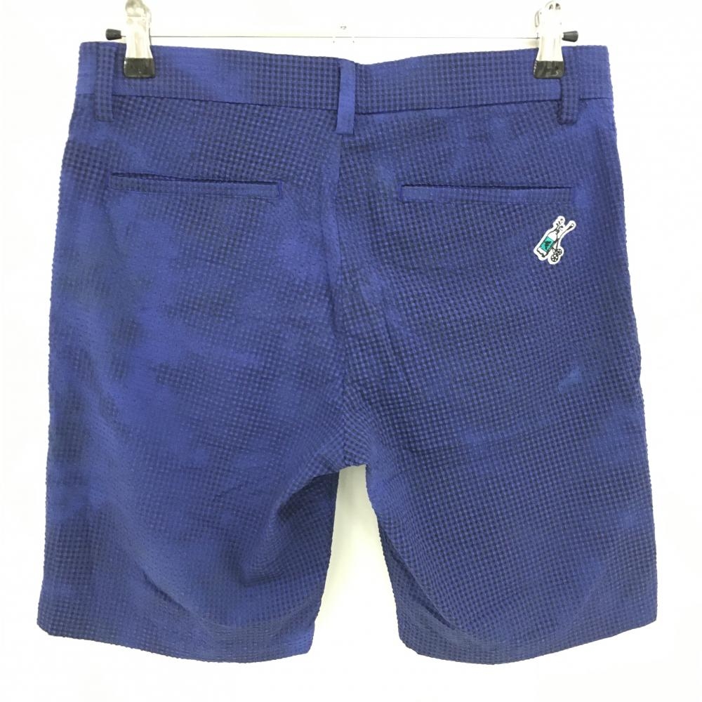 【超美品】アディダス ハーフパンツ ブルーパープル系×黒 総柄 サッカー生地 ストレッチ メンズ 79 ゴルフウェア 2022年モデル adidas