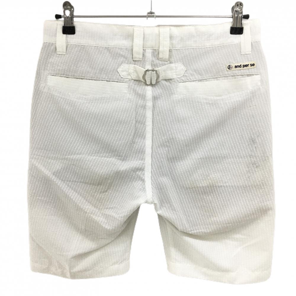 アンパスィ ハーフパンツ 白 サッカー生地 裏地メッシュ メンズ 79(M) ゴルフウェア and per se