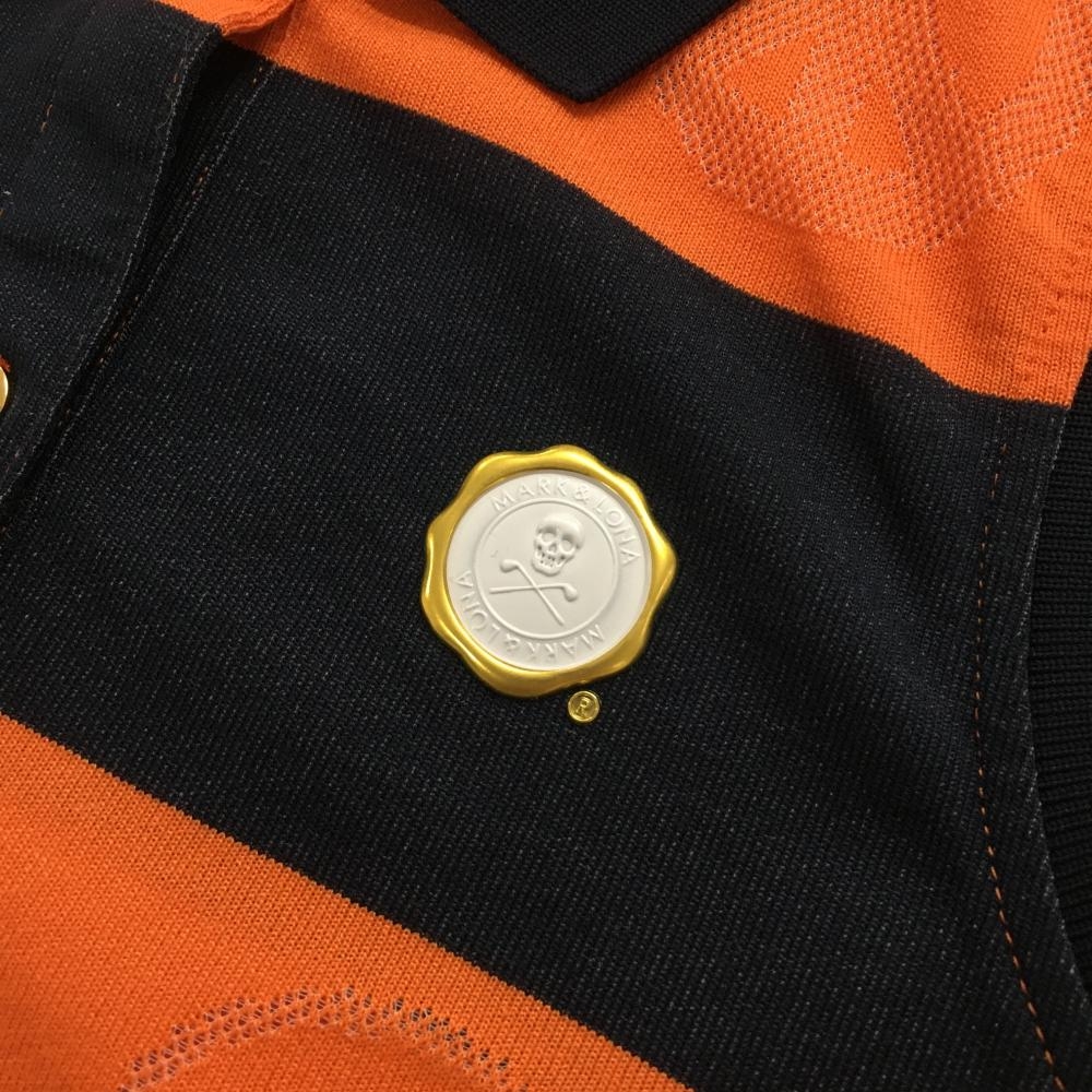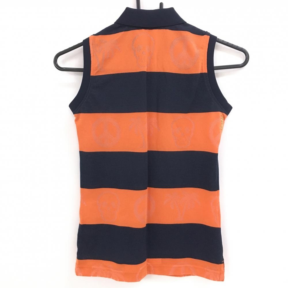 【超美品】マークアンドロナ ノースリーブポロシャツ ダークネイビー×オレンジ レディース XS ゴルフウェア MARK&LONA