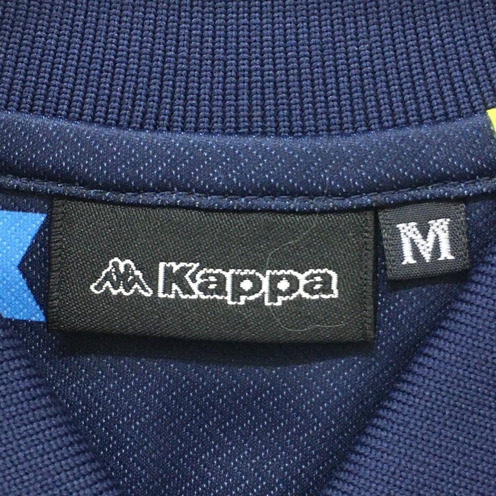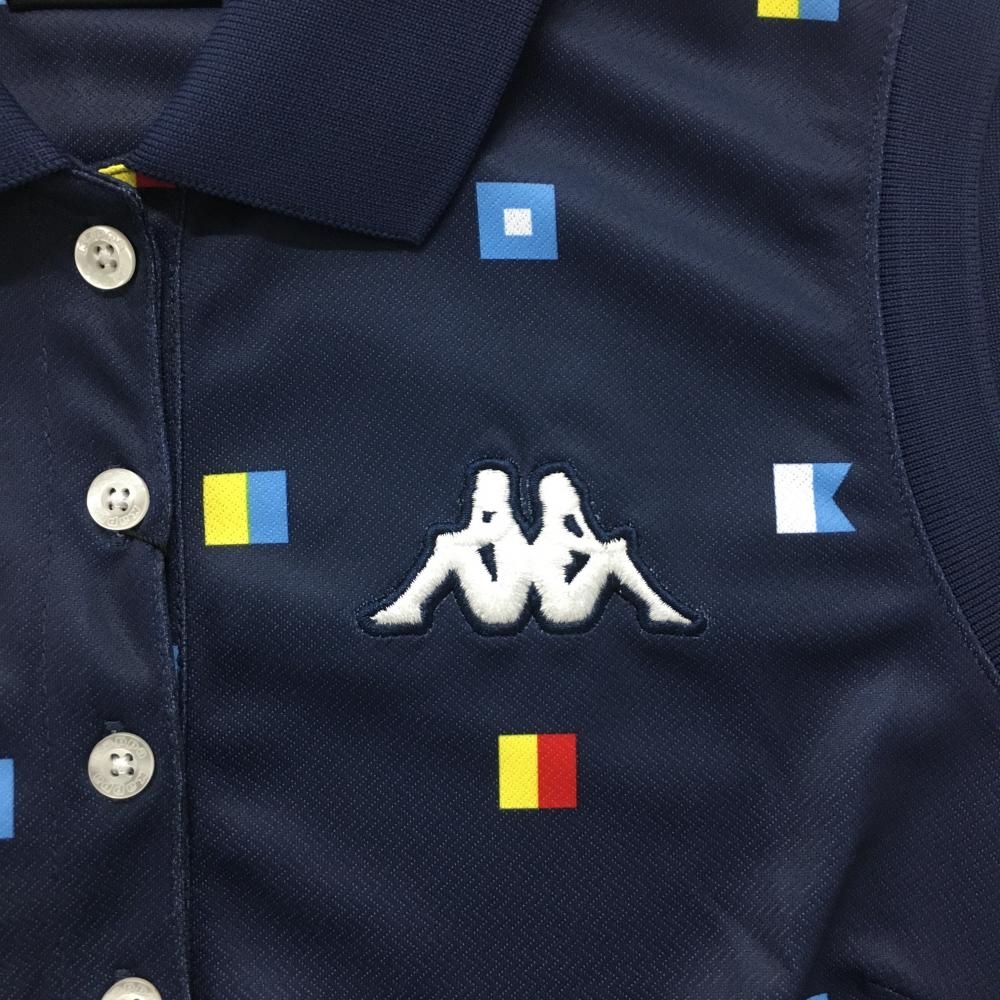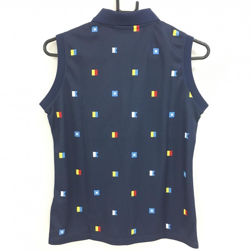 【新品】カッパ ノースリーブポロシャツ ネイビー×マルチカラー 総柄 胸元ロゴ QUICK-DRY UVPROTECT レディース M ゴルフウェア Kappa