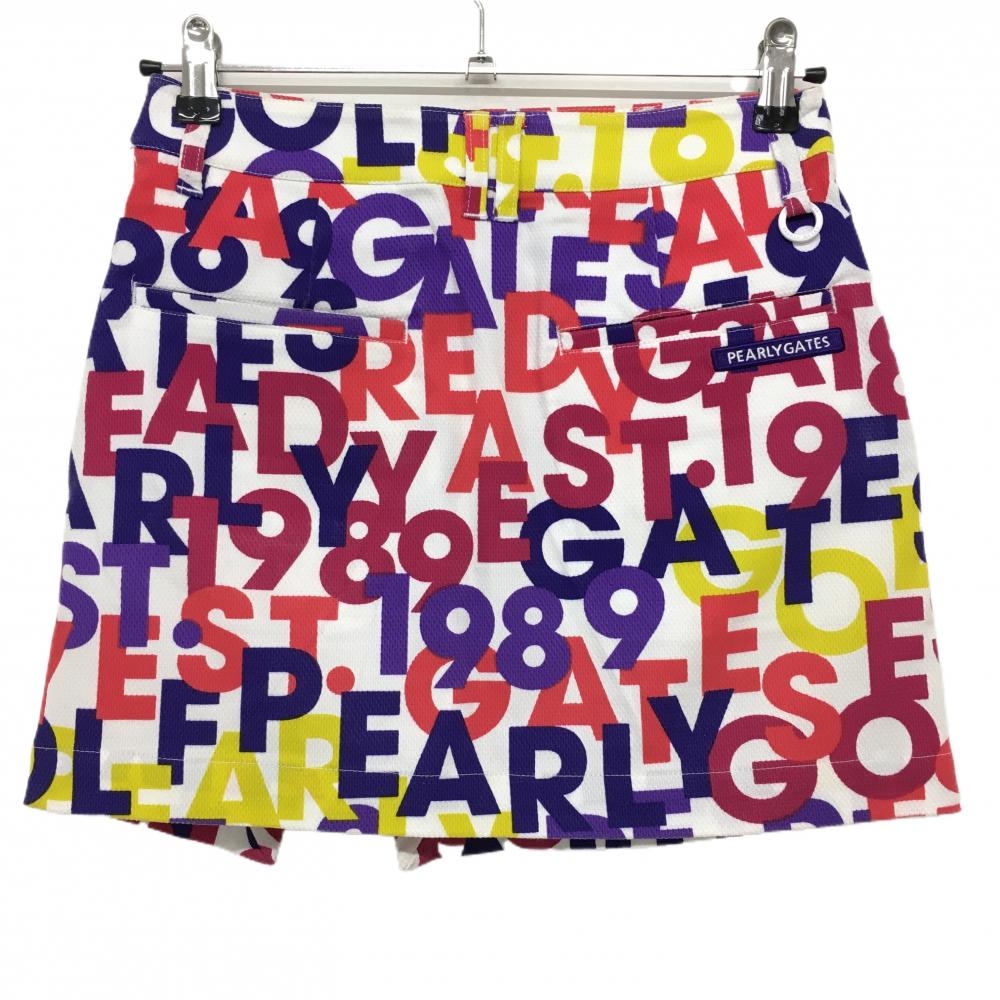パーリーゲイツ スカート 白×マルチカラー ロゴ総柄 織生地 レディース 00(XS) ゴルフウェア PEARLY GATES