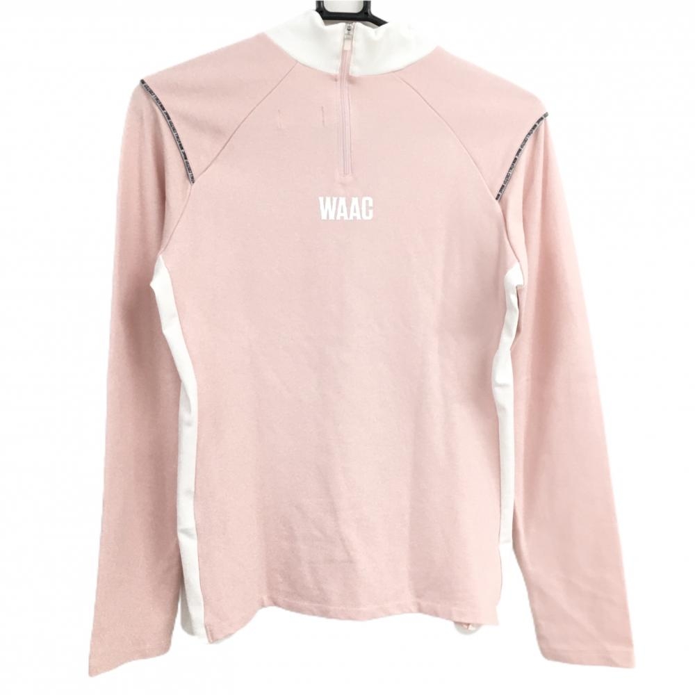 【超美品】ワック 長袖ハイネックシャツ ピンク×白 ビッグロゴ バックジップ レディース 3(L) ゴルフウェア WAAC