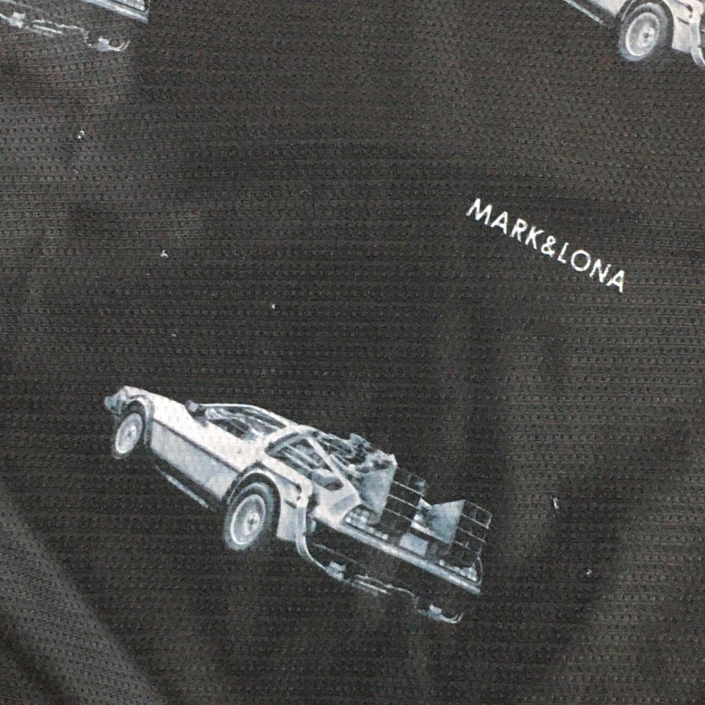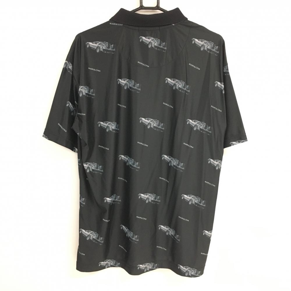 マークアンドロナ 半袖ポロシャツ 黒×グレー 車柄 BACK TOTHE FUTURE メンズ 48(L) ゴルフウェア MARK&LONA