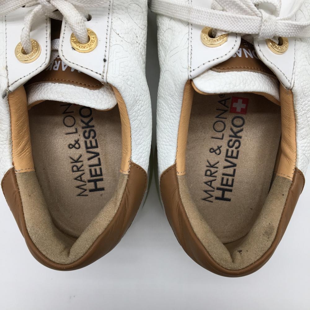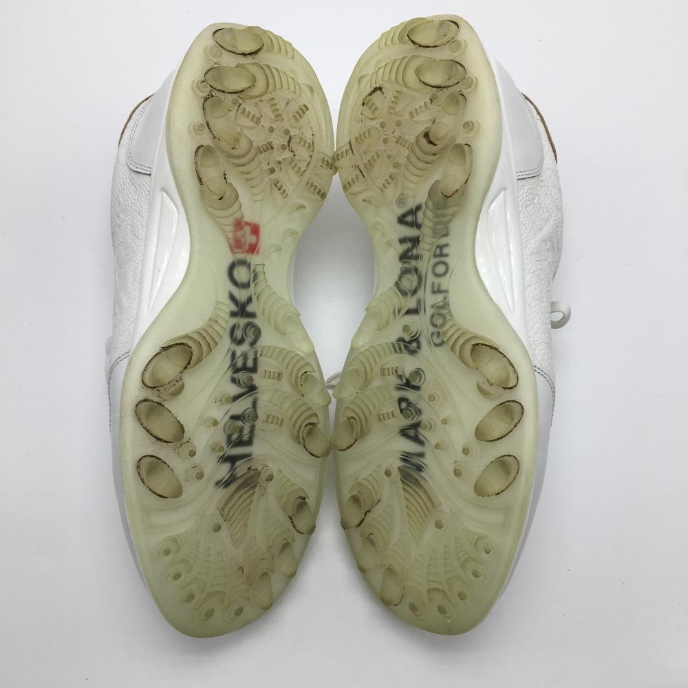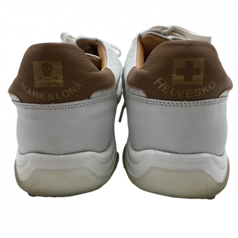 【美品】マークアンドロナ ゴルフシューズ 白×ブラウン 英字柄 HELVESKO スパイクレス メンズ 27.0 ゴルフウェア MARK&LONA