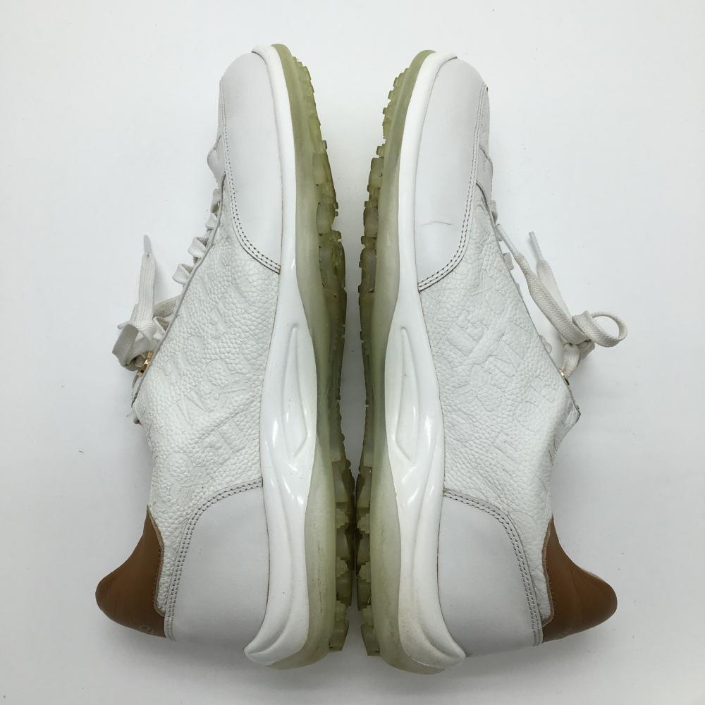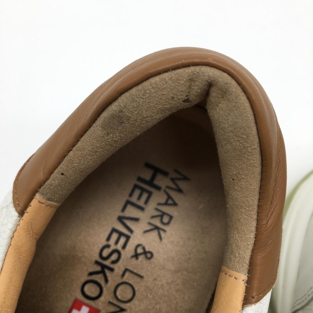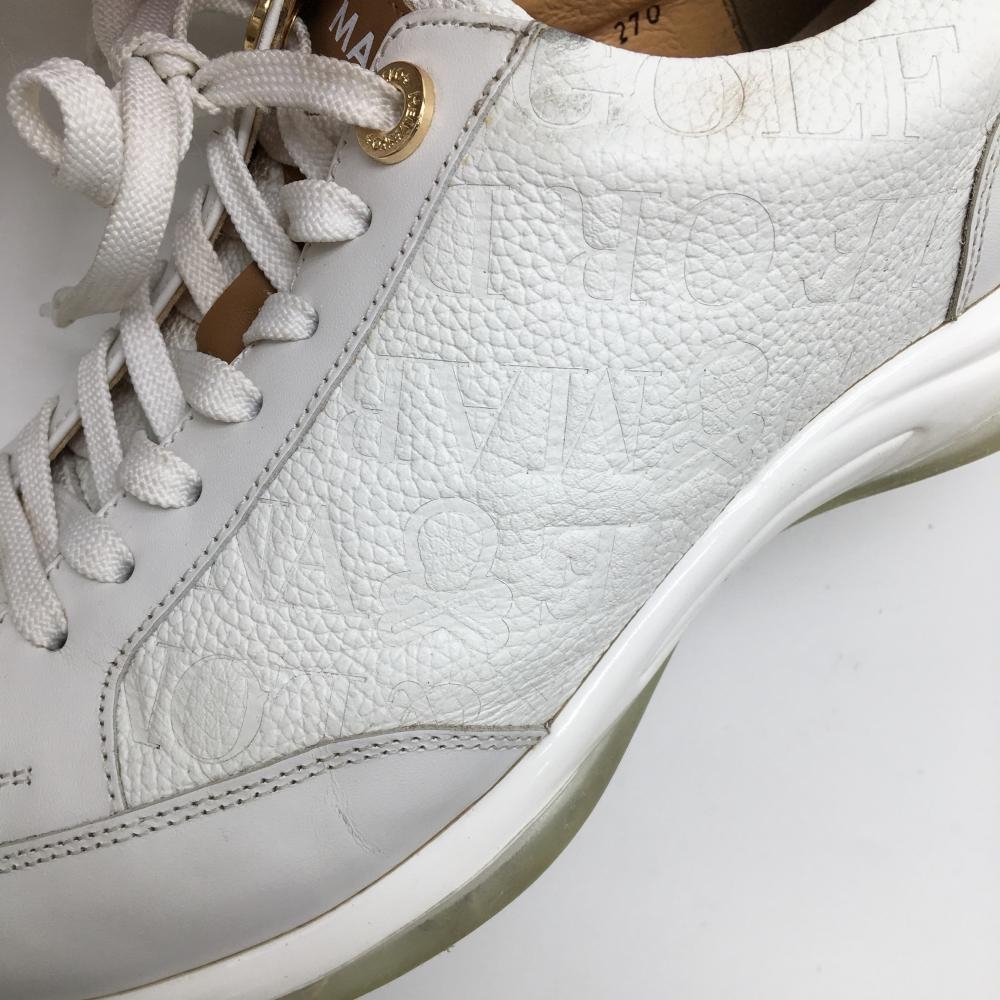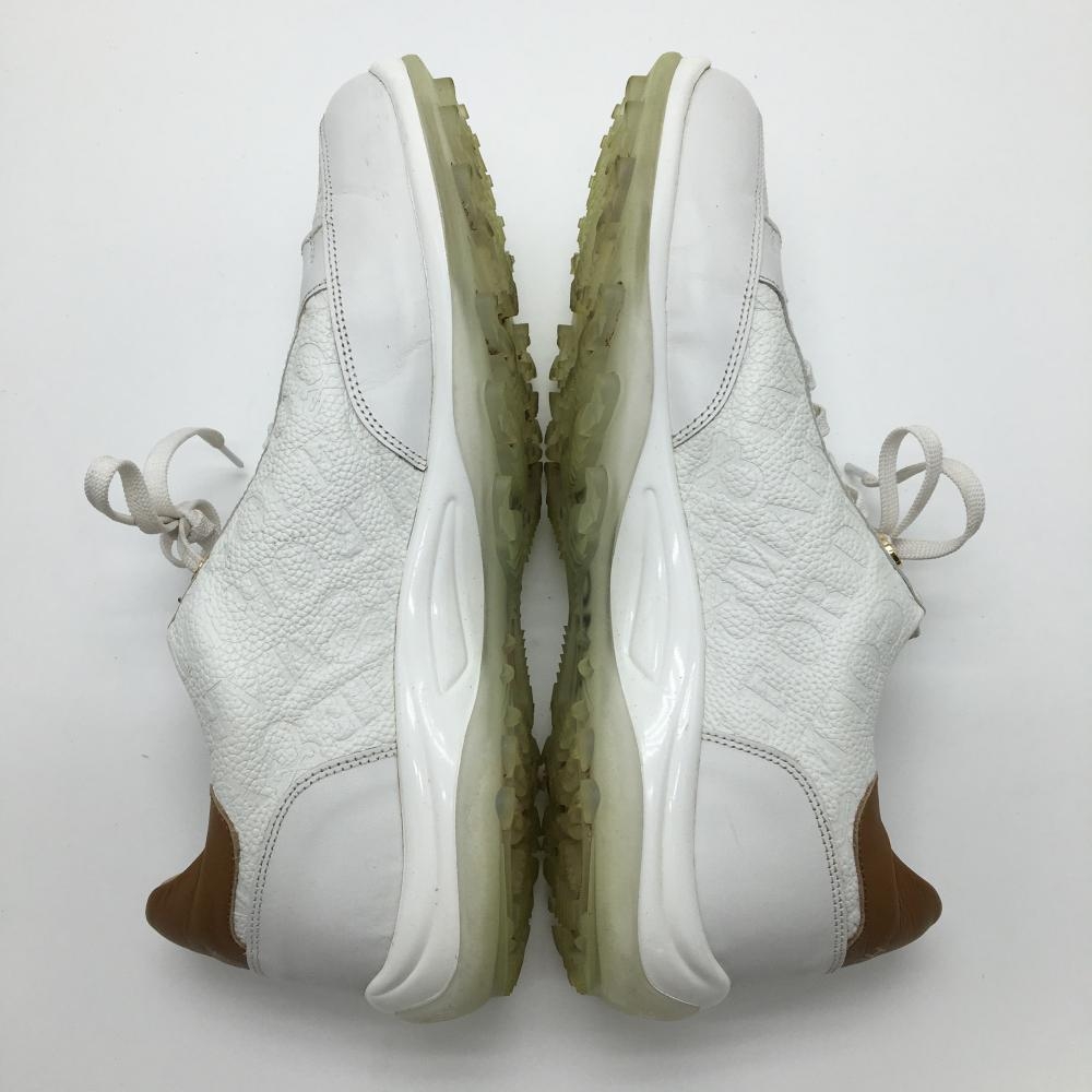 【美品】マークアンドロナ ゴルフシューズ 白×ブラウン 英字柄 HELVESKO スパイクレス メンズ 27.0 ゴルフウェア MARK&LONA