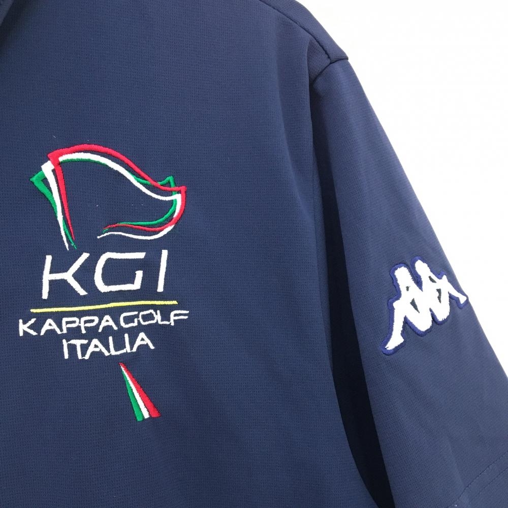 【美品】カッパ 半袖ポロシャツ ネイビー×白 ボタンダウン 胸ロゴ メンズ LL ゴルフウェア Kappa