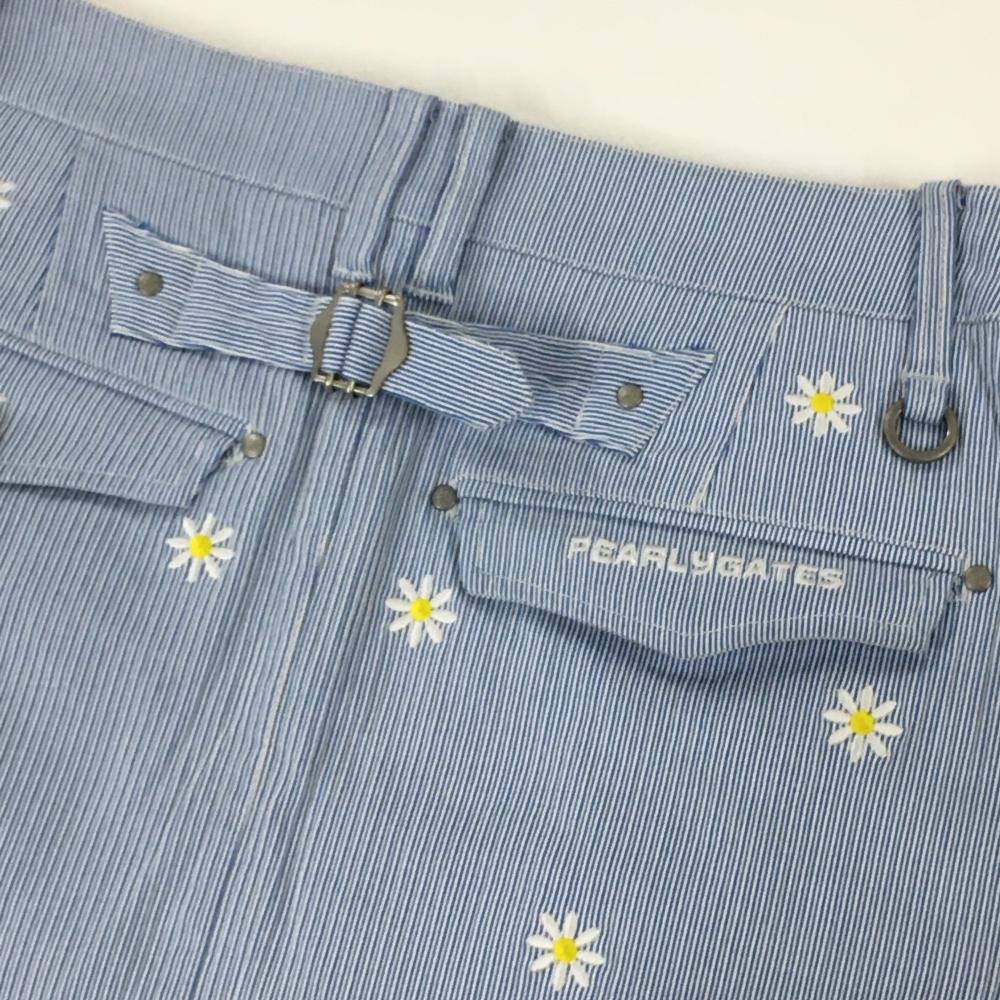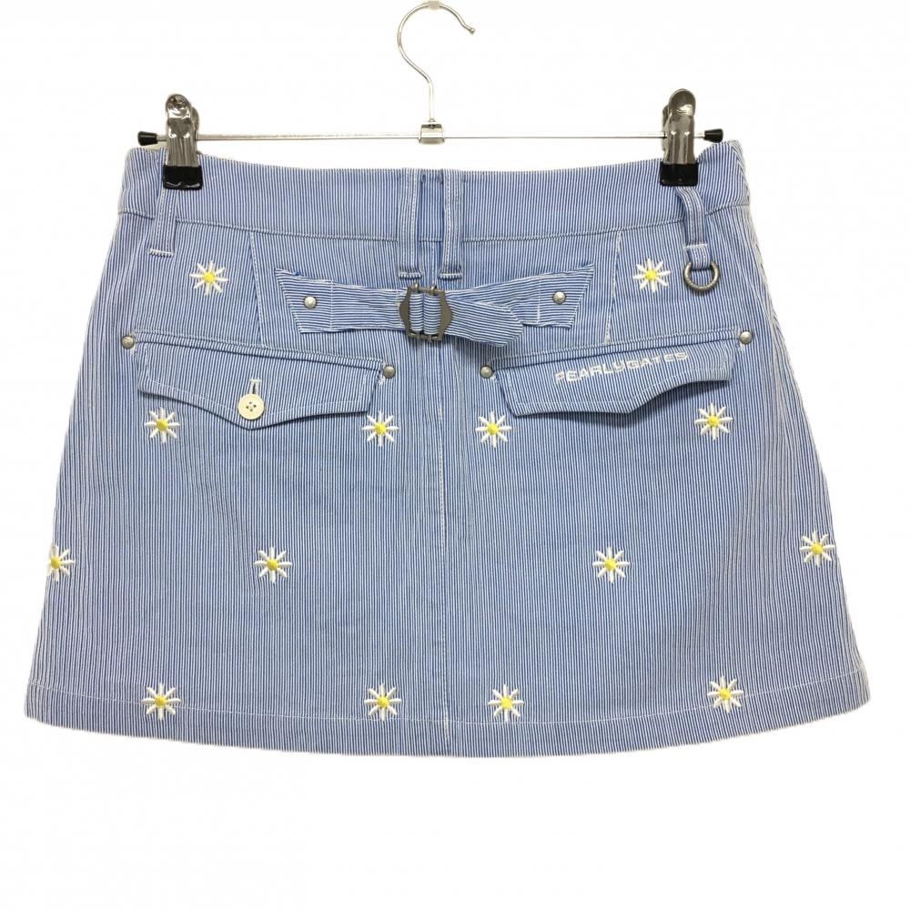 パーリーゲイツ スカート ブルー×白 細ストライプ 花刺しゅう レディース 0(S) ゴルフウェア PEARLY GATES