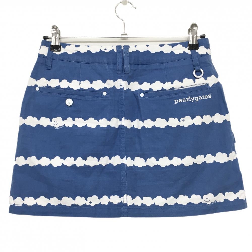 パーリーゲイツ スカート ブルー×白 雲柄ボーダー レディース 0(S) ゴルフウェア PEARLY GATES
