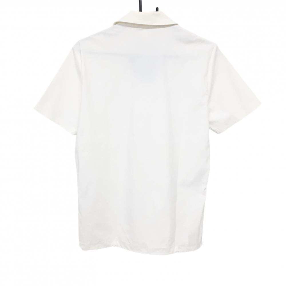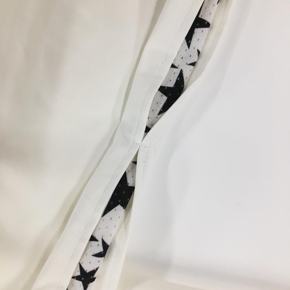 【美品】ロックデュード 襟付き半袖シャツ 白×黒 サイド星柄 襟下・サイドメッシュ ドローコード メンズ 03 ゴルフウェア ROCK DUDE