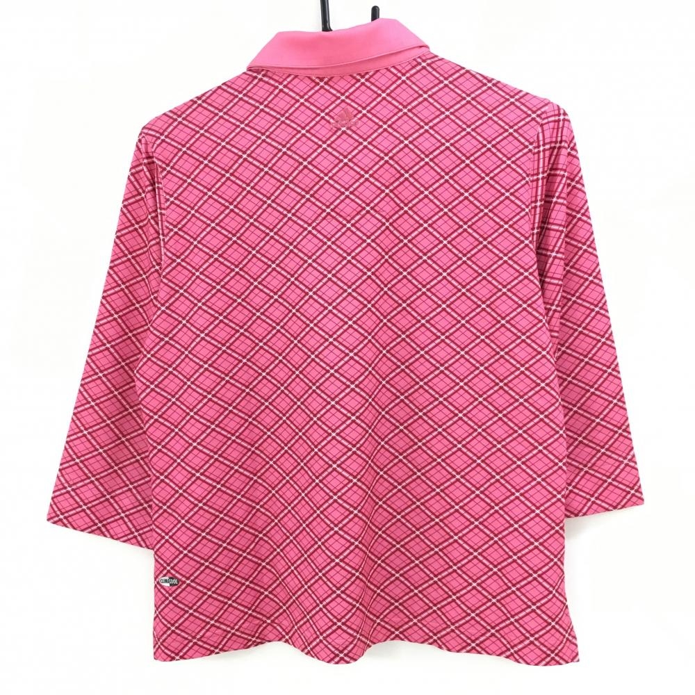 アディダス 七分袖ポロシャツ ピンク×白 チェック CLIMACOOL レディース OT/XG ゴルフウェア adidas