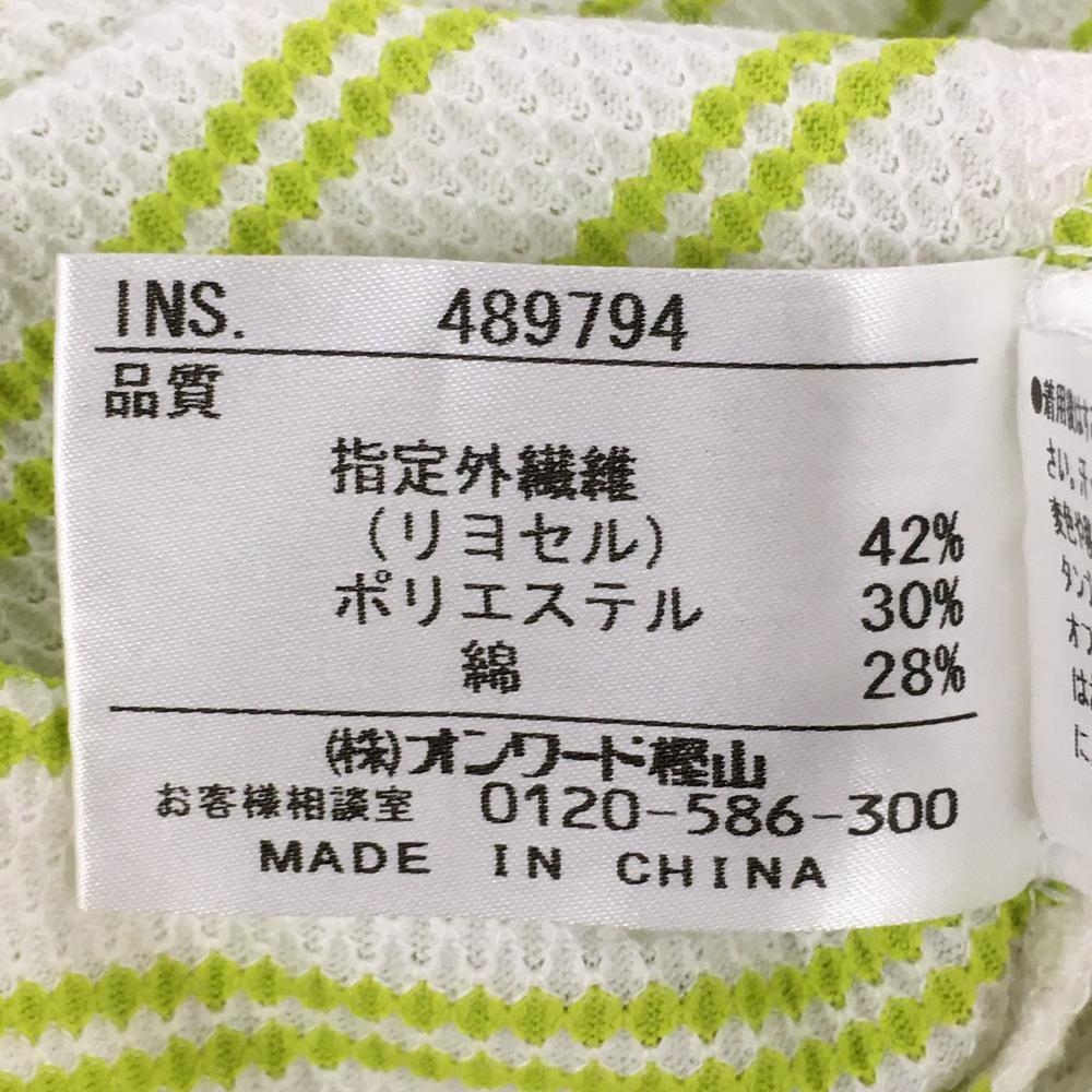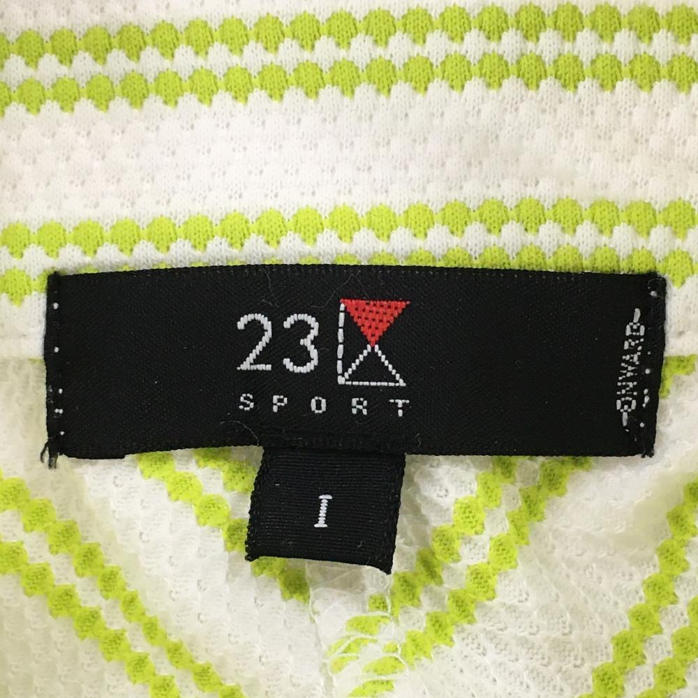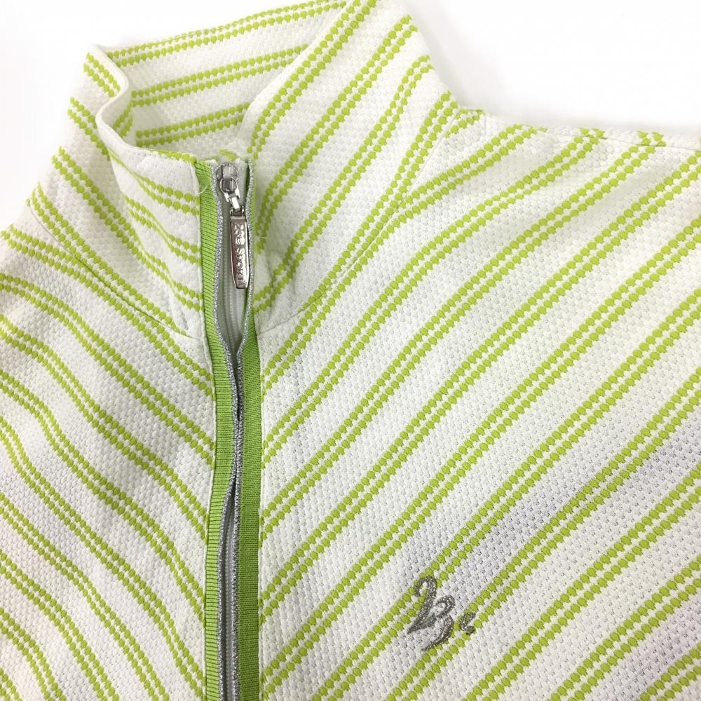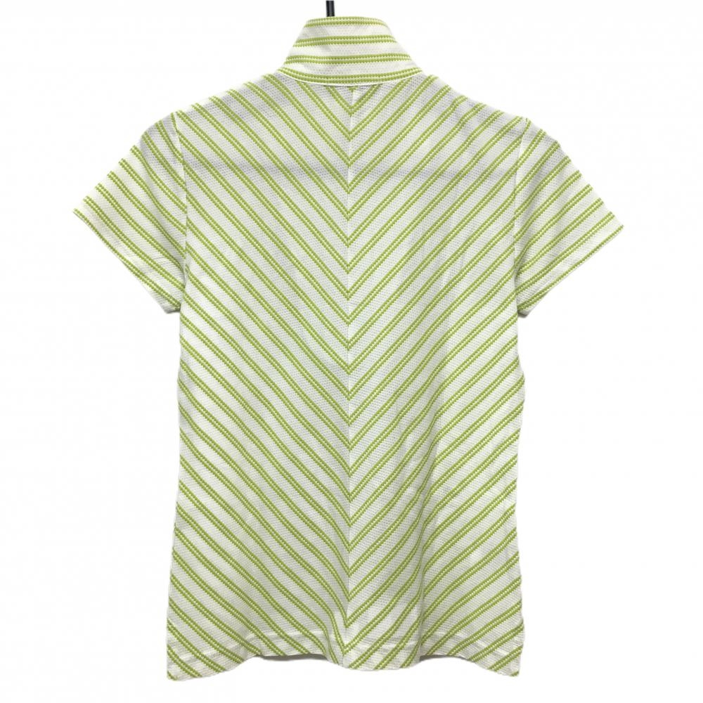 【美品】23区スポーツ 半袖ハイネックシャツ 白×ライトグリーン 斜めストライプ ハーフジップ レディース I(M) ゴルフウェア 23区