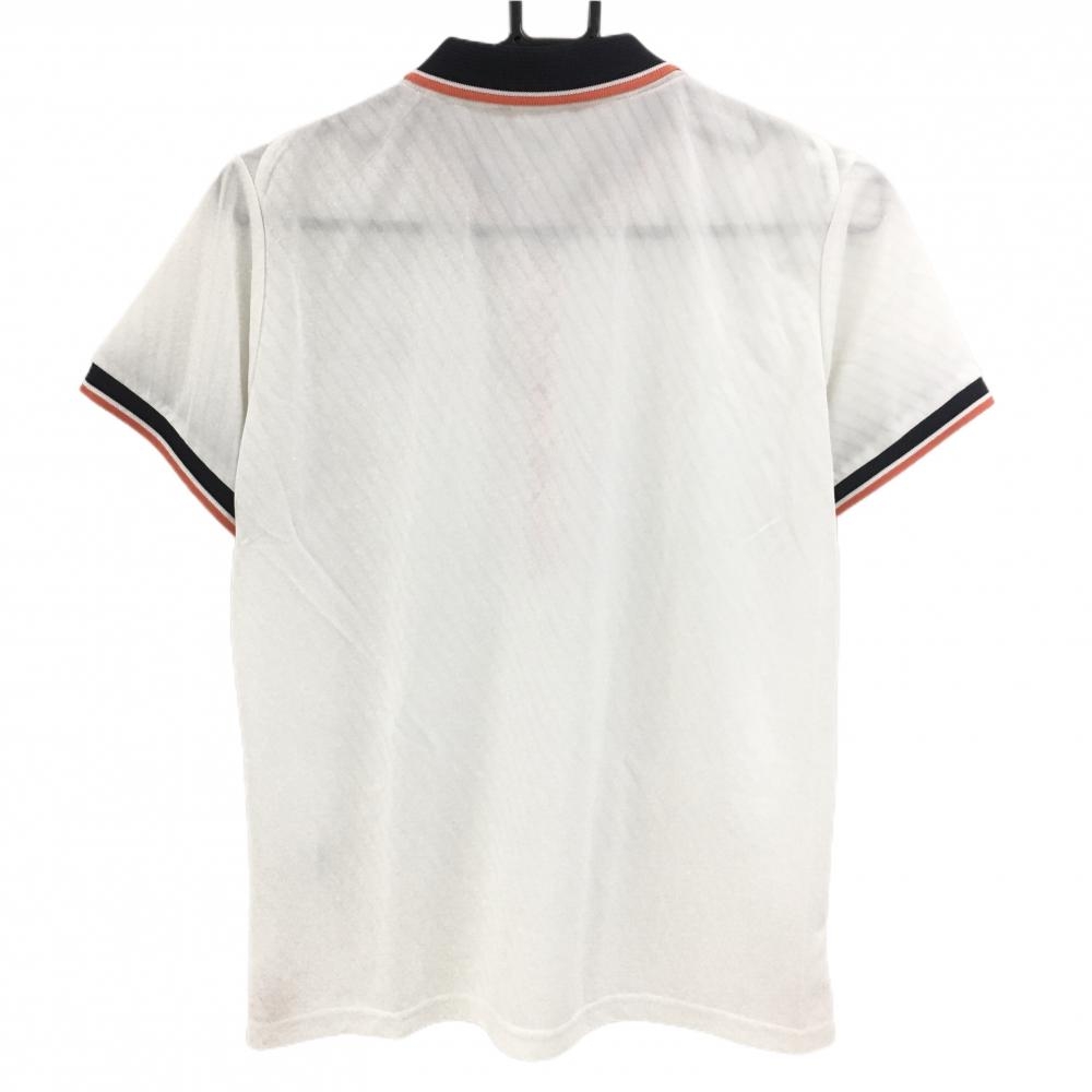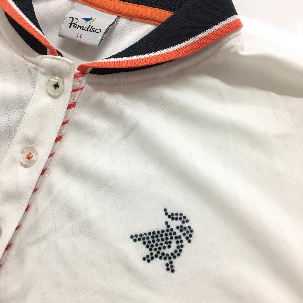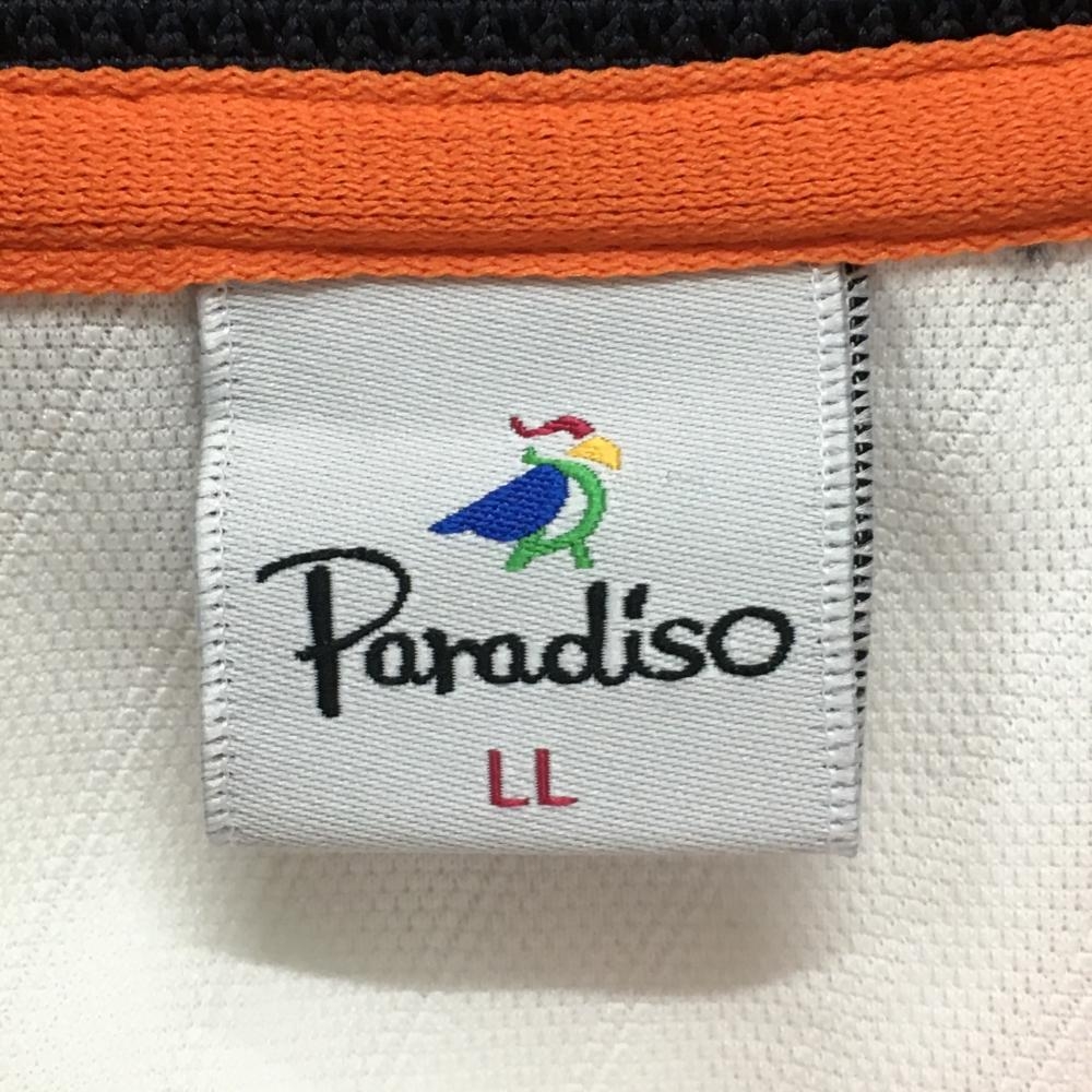 【超美品】パラディーゾ 半袖ポロシャツ 白×オレンジ 斜めストライプ織生地 レディース LL ゴルフウェア Paradiso