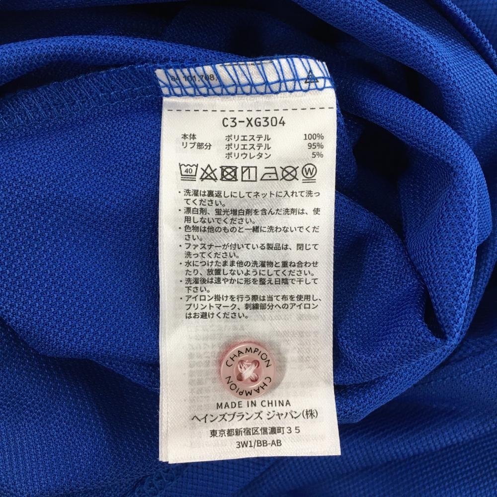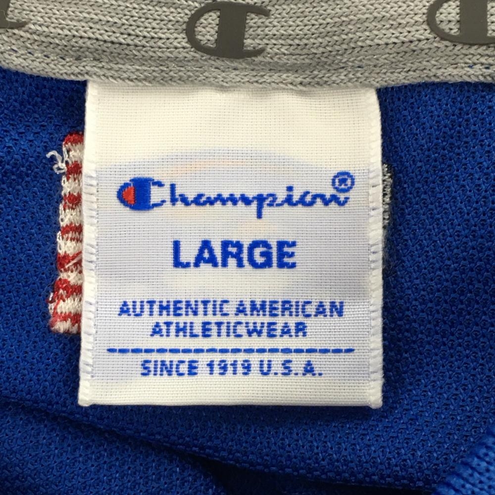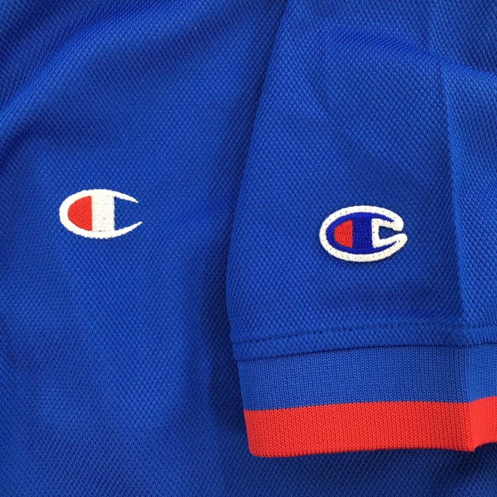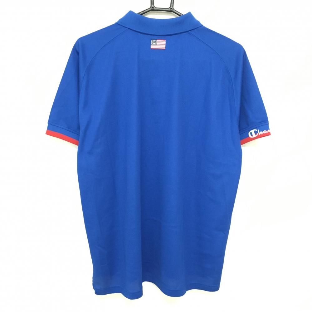 【超美品】チャンピオン 半袖ポロシャツ ブルー 袖口レッド 速乾性 抗菌・防臭機能 メンズ LARGE ゴルフウェア 2023年モデル Champion