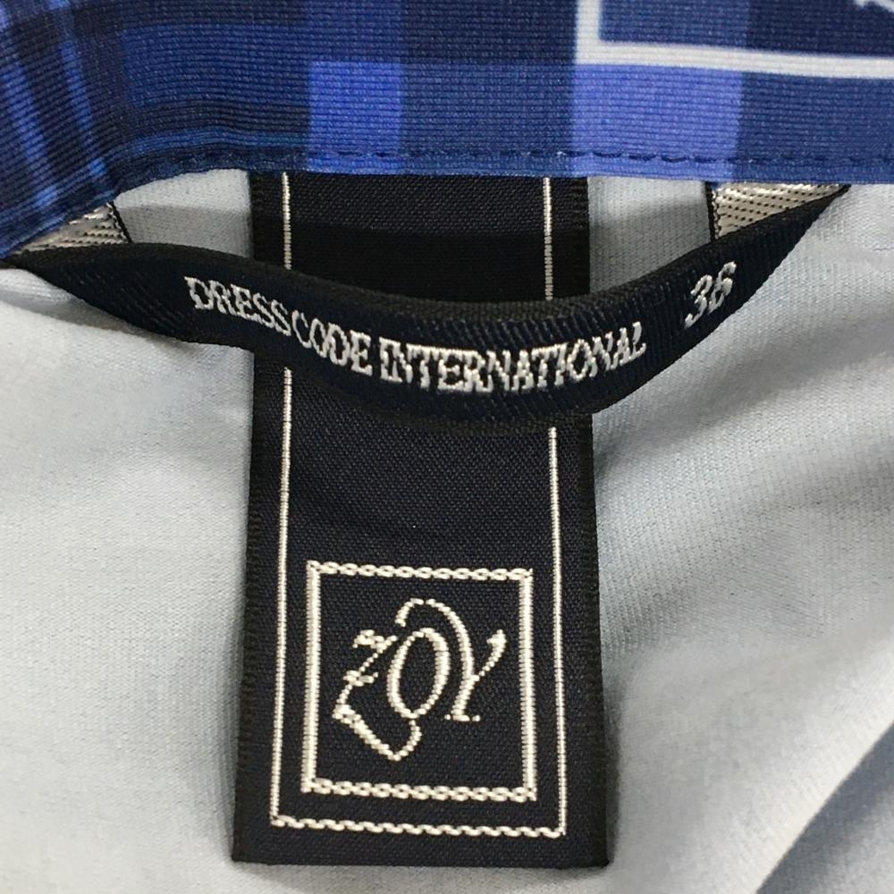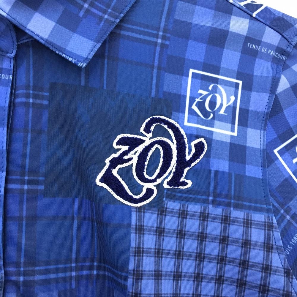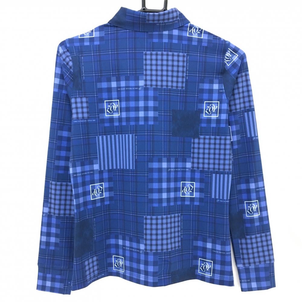 【超美品】ゾーイ 長袖ポロシャツ ネイビー×ブルー チェック 一部ストライプ ストレッチ レディース 36(S) ゴルフウェア ZOY