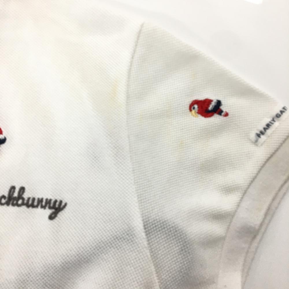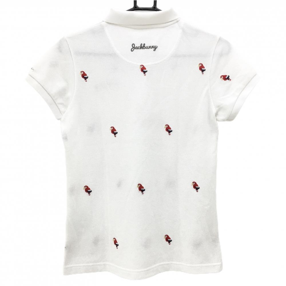 ジャックバニー 半袖ポロシャツ 白×レッド 鳥刺しゅう柄 レディース 1(M) ゴルフウェア Jack Bunny