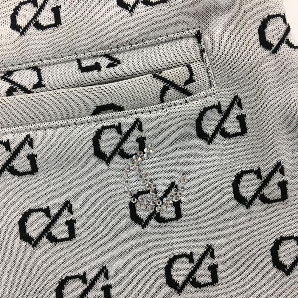 【美品】キャロウェイレッドレーベル スカート ライトグレー×黒 モノグラム総柄 ラインストーンロゴ レディース S ゴルフウェア Callaway