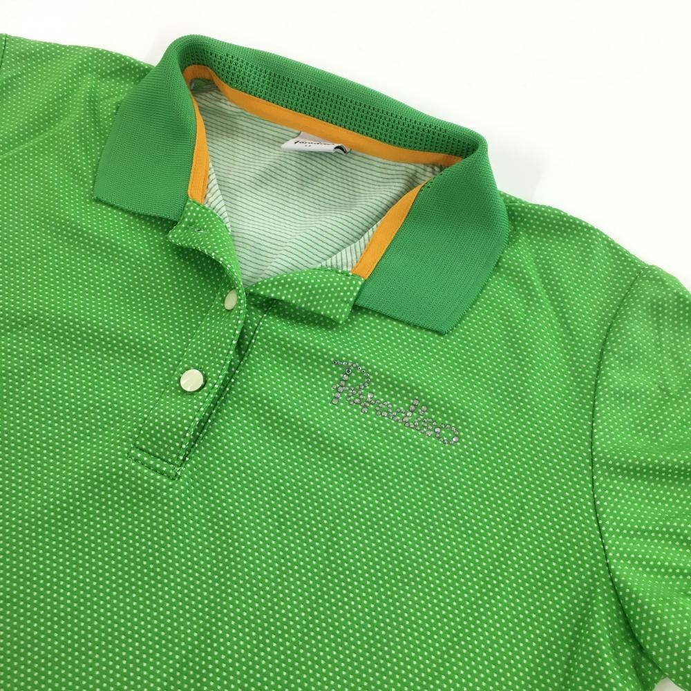 パラディーゾ 半袖ポロシャツ ライトグリーン×白 ピンドット調 襟一部メッシュ レディース LL ゴルフウェア Paradiso