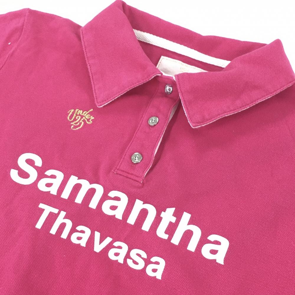 サマンサタバサUNDER25 半袖ポロシャツ ピンク×白 レディース M ゴルフウェア Samantha Thavasa