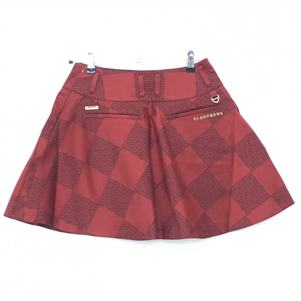 【新品】セントアンドリュース スカート レッド×黒 総柄 ストレッチ レディース S ゴルフウェア St ANDREWS