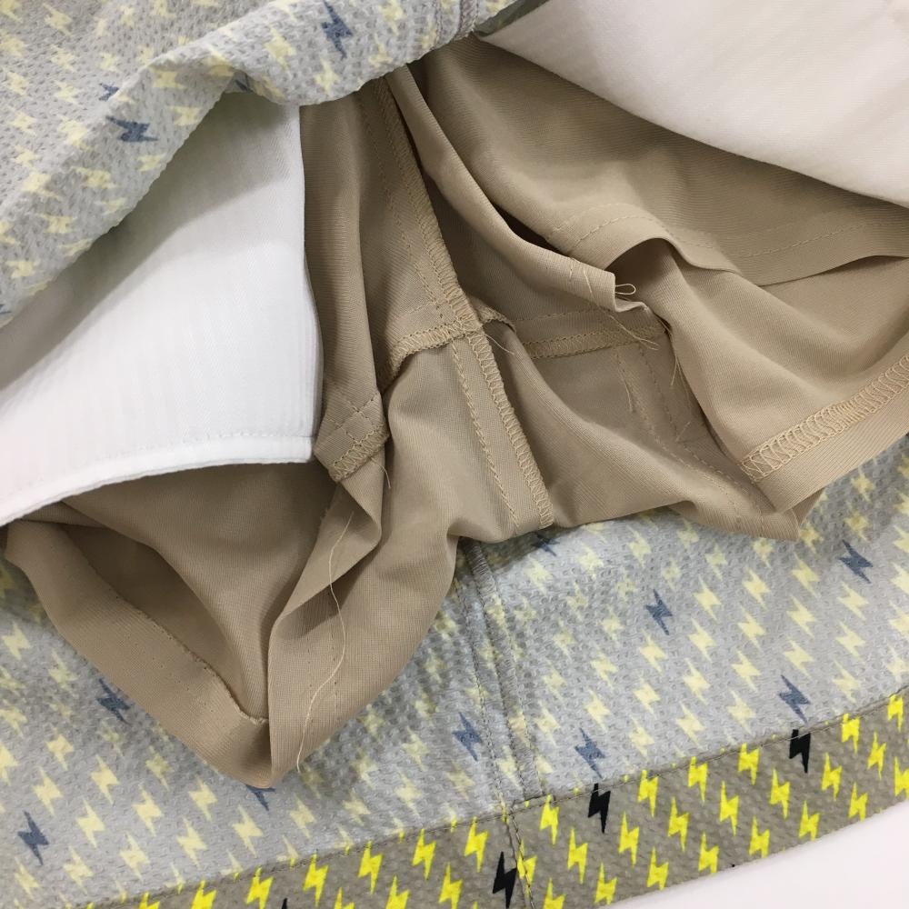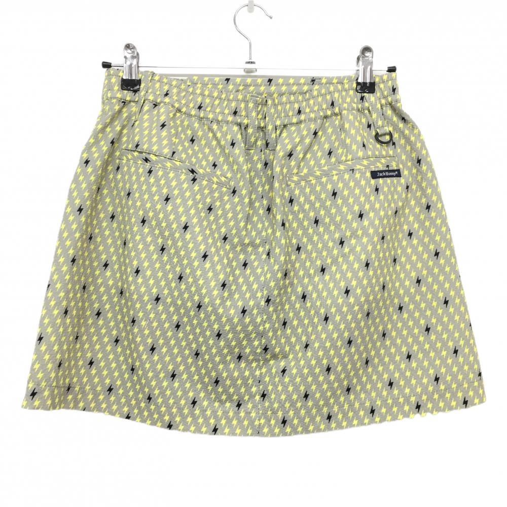 【超美品】ジャックバニー スカート グレー×イエロー イナズマ総柄 サッカー調生地 レディース 2(L) ゴルフウェア Jack Bunny
