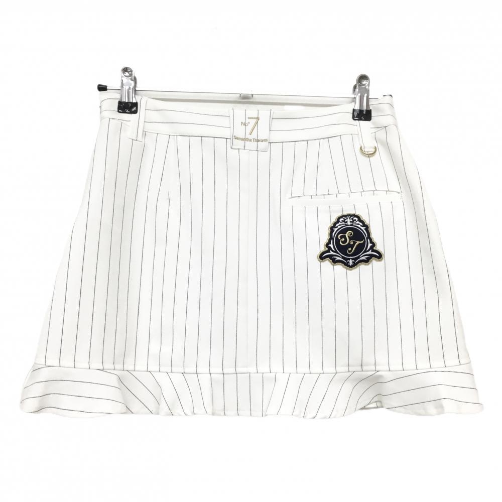 【美品】サマンサタバサNo.7 スカート 白×黒 ストライプ ストレッチ レディース 38(M) ゴルフウェア Samantha Thavasa