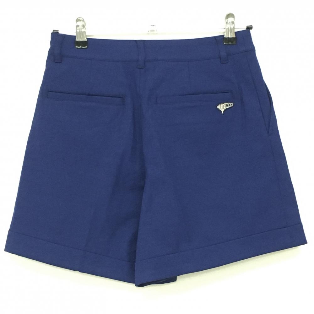 【超美品】ビームスゴルフ キュロットスカート ブルー 麻混 無地 レディース S ゴルフウェア BEAMS GOLF