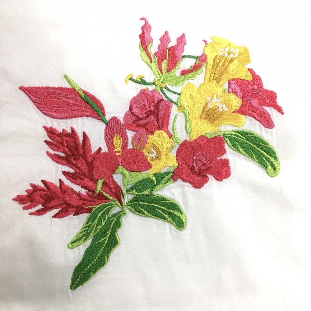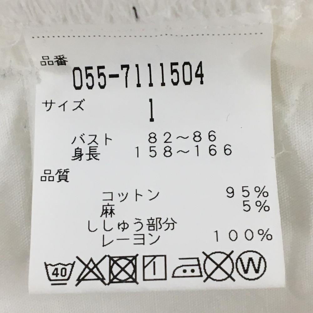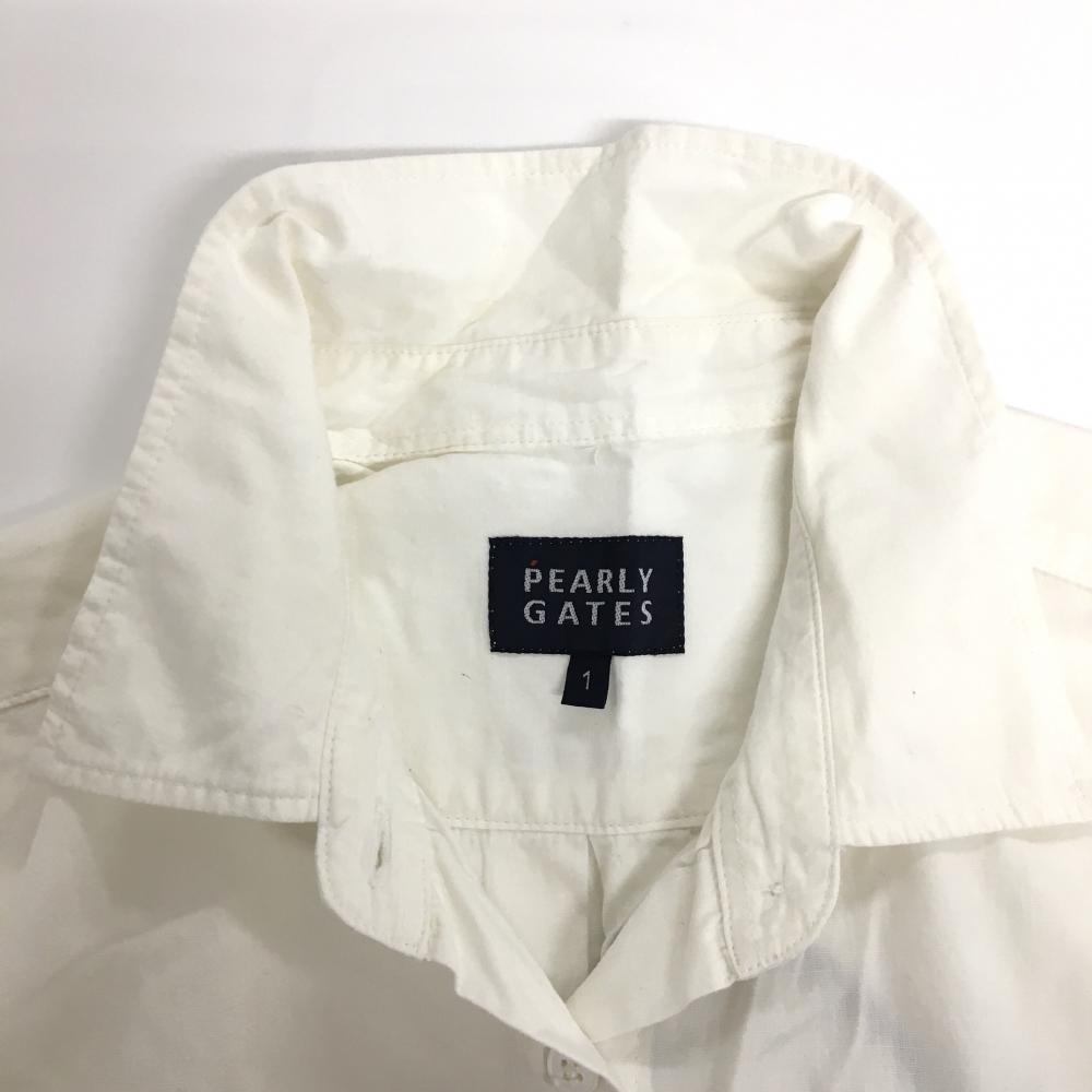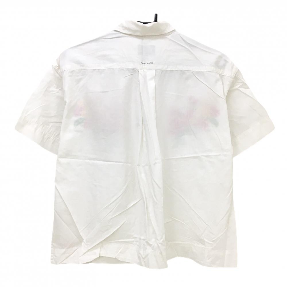 パーリーゲイツ 半袖シャツ 白 花刺しゅうピンク 麻混 レディース 1(M) ゴルフウェア PEARLY GATES
