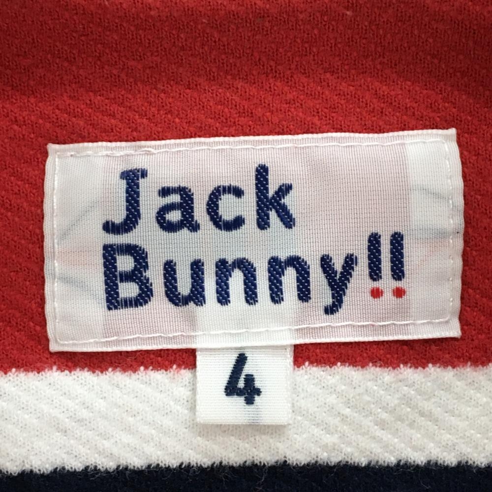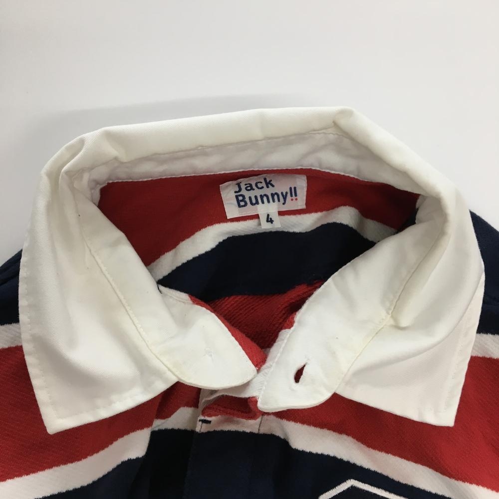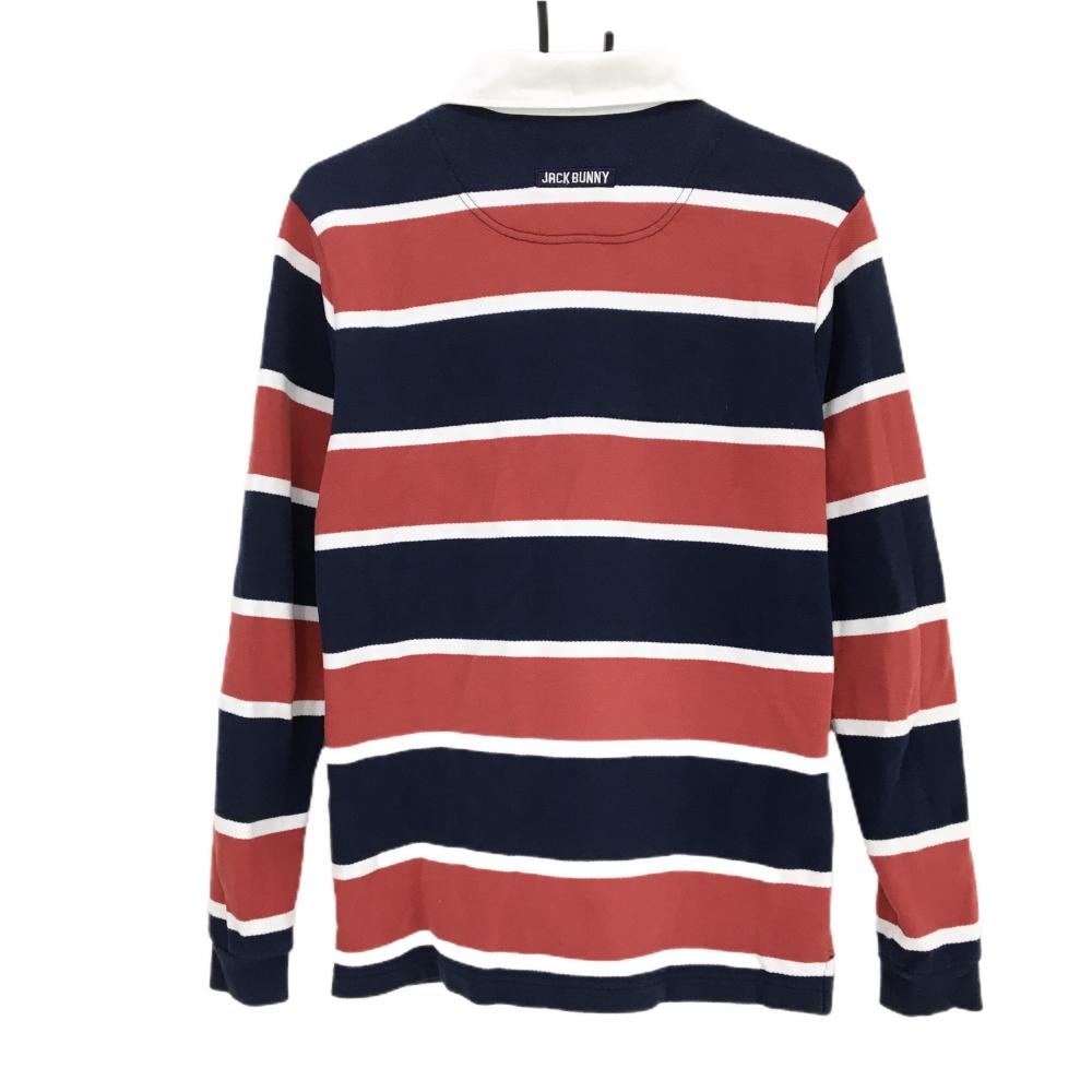 ジャックバニー 長袖ポロシャツ ネイビー×レッド ボーダー ロゴ刺しゅう メンズ 4(M) ゴルフウェア Jack Bunny