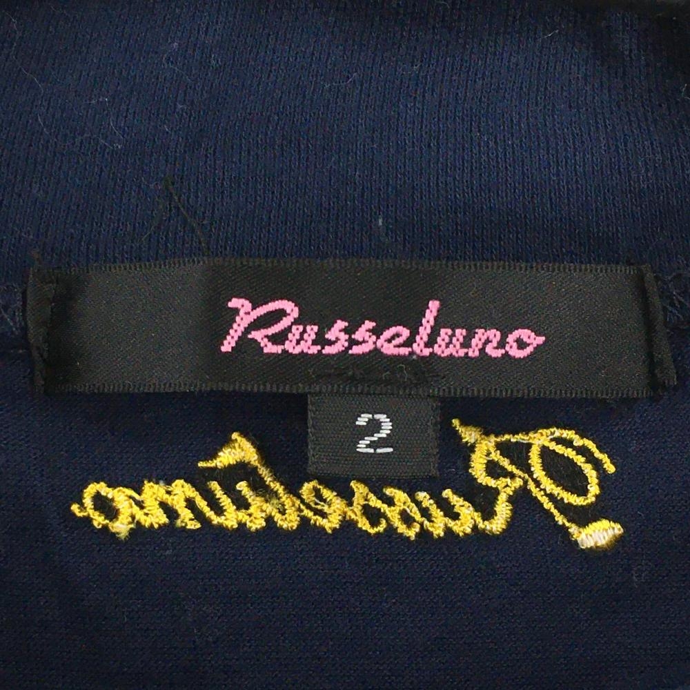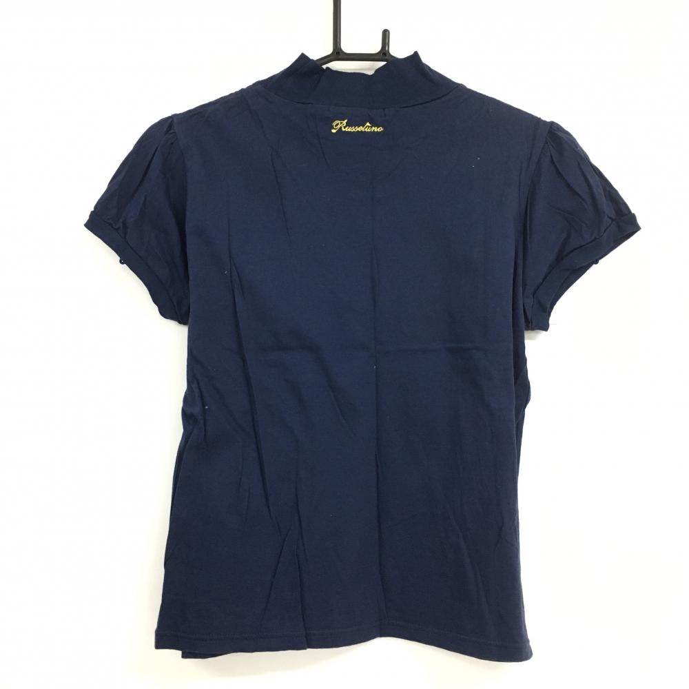 【美品】ラッセルノ 半袖ハイネックシャツ ネイビー 眼鏡 袖口リブ レディース 2(L) ゴルフウェア RUSSELUNO